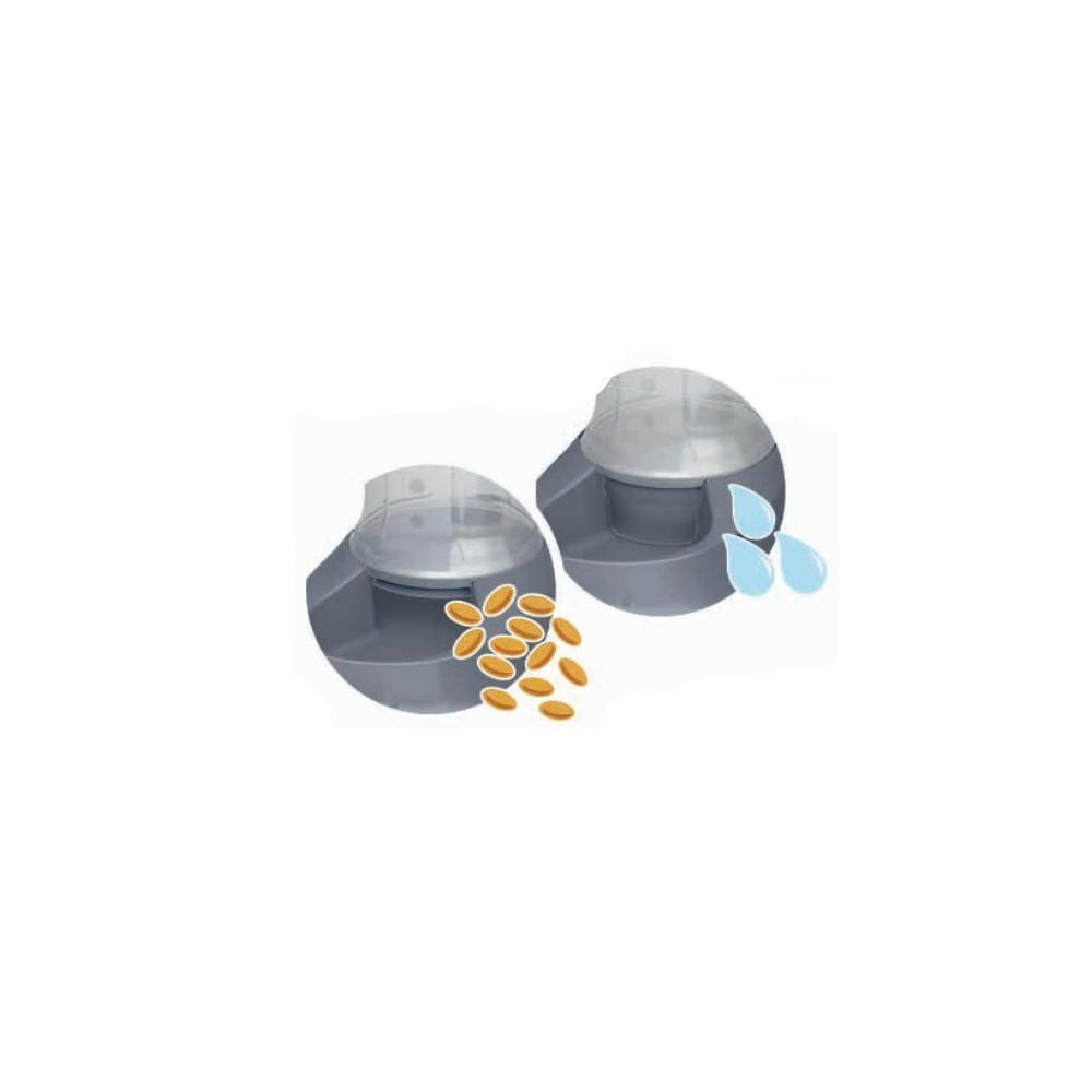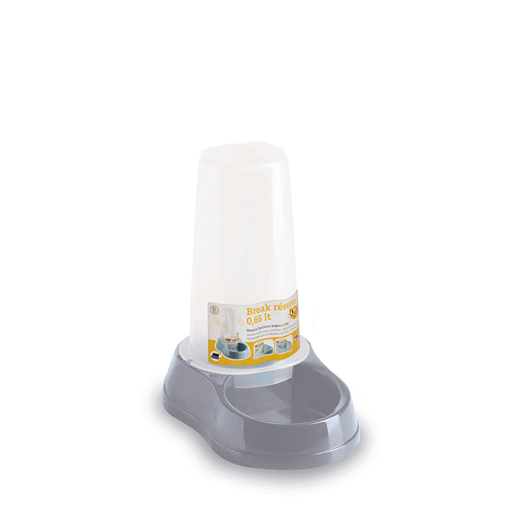 Ce distributeur mixte antidérapant permet d’offrir à l'animal plusieurs rations d’eau ou de croquettes. Le niveau visible grâce au bac de réserve transparent diminue au fur et à mesure de la consommation. Antidérapant, il permet au chien de laper ou manger sans renverser le contenu sur le sol. Facile à nettoyer, il s’entretient quotidiennement. Pour tous types de chiens et chats. Fabriqué en Italie. Contenance : 0,65L. Coloris : gris pierre
