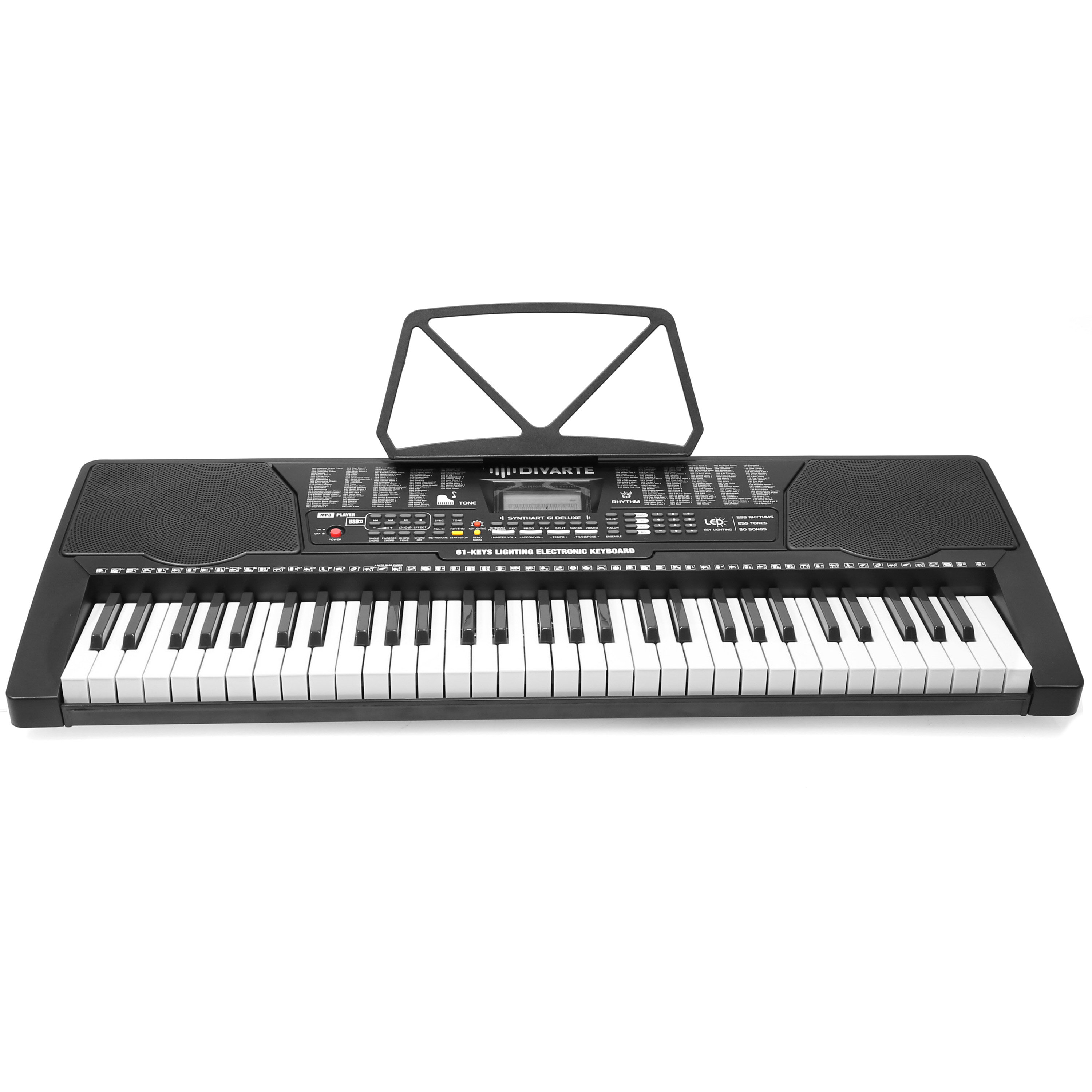 [ RETRO ÉCLAIRÉ ] : Le piano synthétiseur 61 notes Synth'art 61 Deluxe de Divarte est équipé de la fonction arrangeur et d'un éclairage clavier. Avec une bibliothèque de 50 morceaux à jouer avec accompagnements, les débutants peuvent facilement se faire la main avec leur premier morceau en très peu de temps.