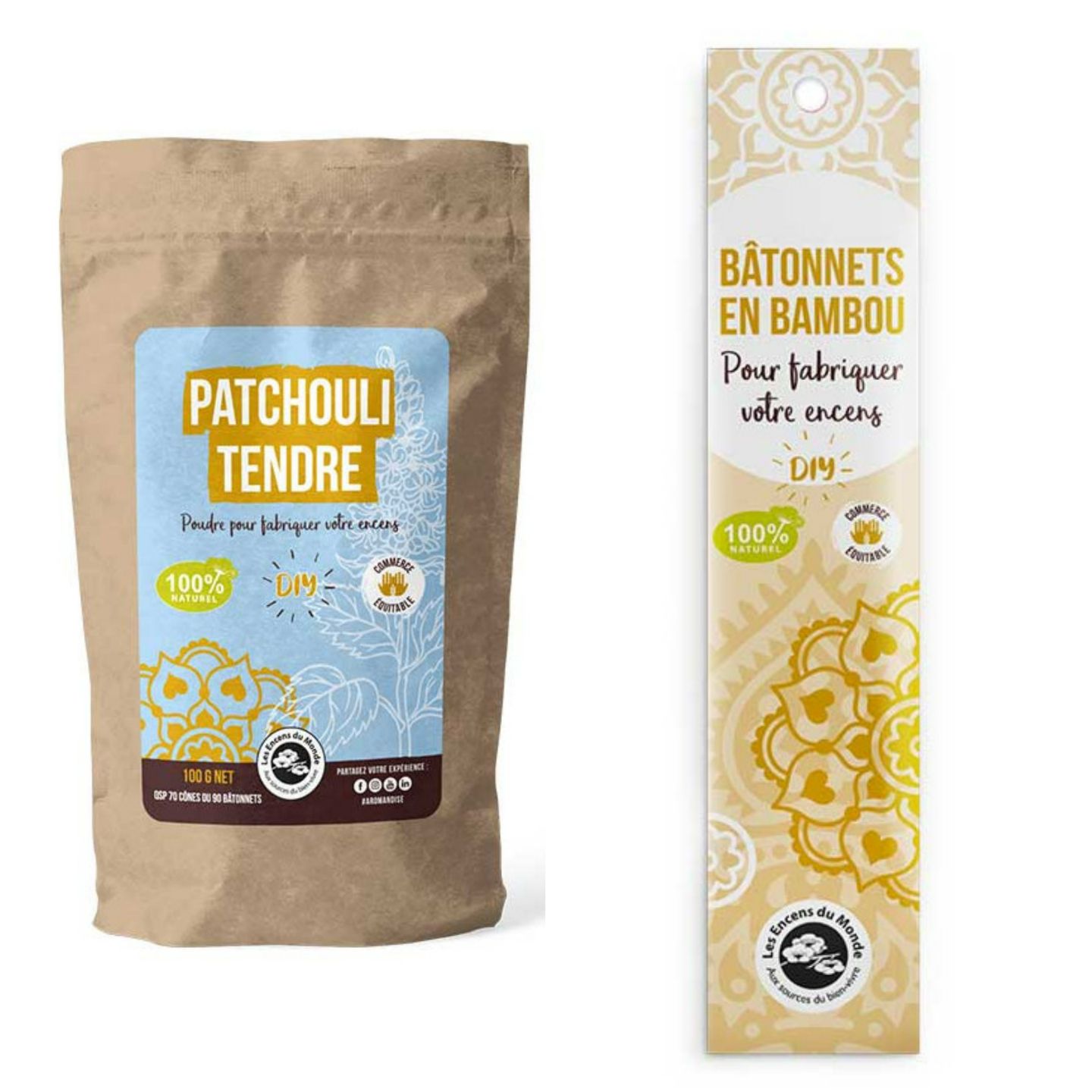 | Libellé | DIY encens - 100 Bâtonnets nus en bambou + Poudre Patchouli Tendre |