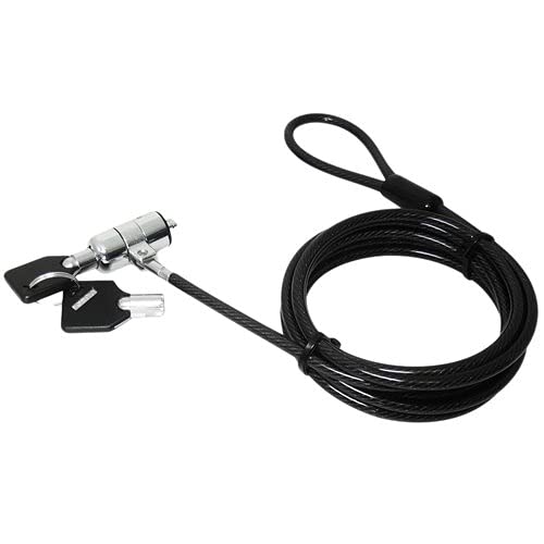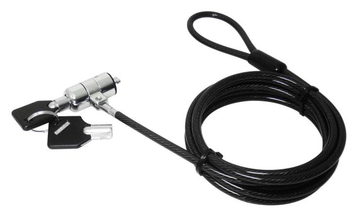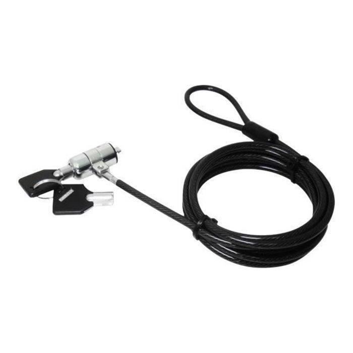 CÂBLE DE SÉCURITÉ ANTIVOL A CLÉ POUR ORDINATEUR PORTABLE. Fixation sur bureau ou structure stable. Livré avec 2 clés. Longueur 1,8m. Compatible ordinateurs portables, écrans, projecteurs.