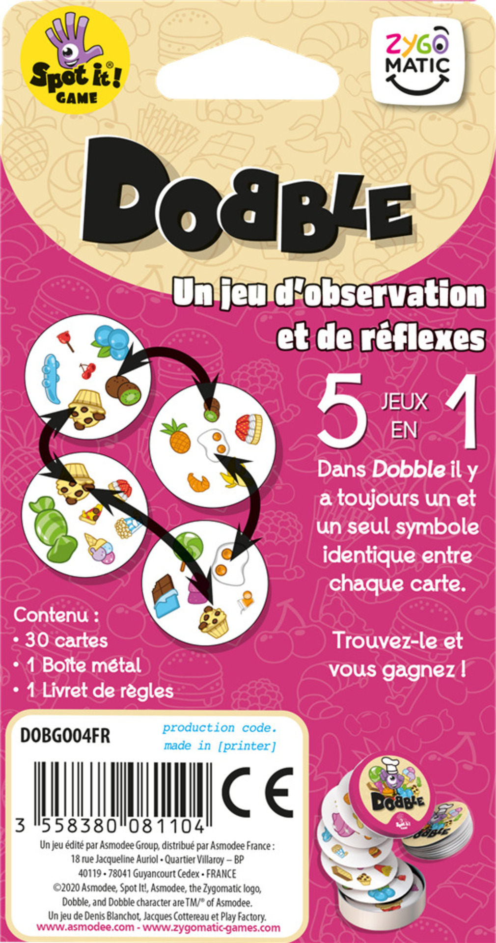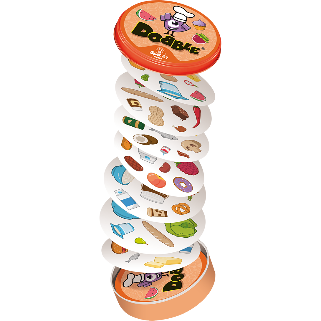 Dobble Gourmandise vous ouvre l’appétit, dans une édition aux symboles culinaires ! Dès 4 ans, profitez du meilleur jeu d’ambiance qui soit !