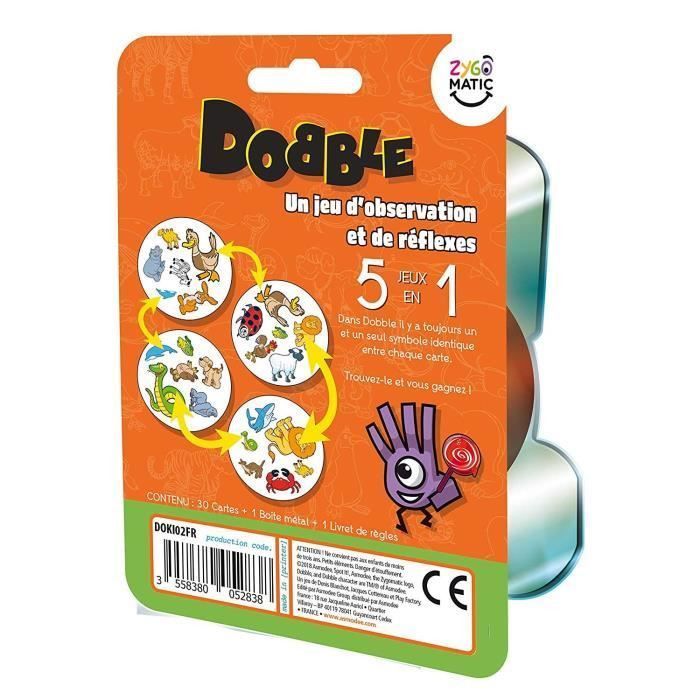 Dobble est un jeu dobservation et de rapidite dans lequel tous les joueurs jouent en meme temps.