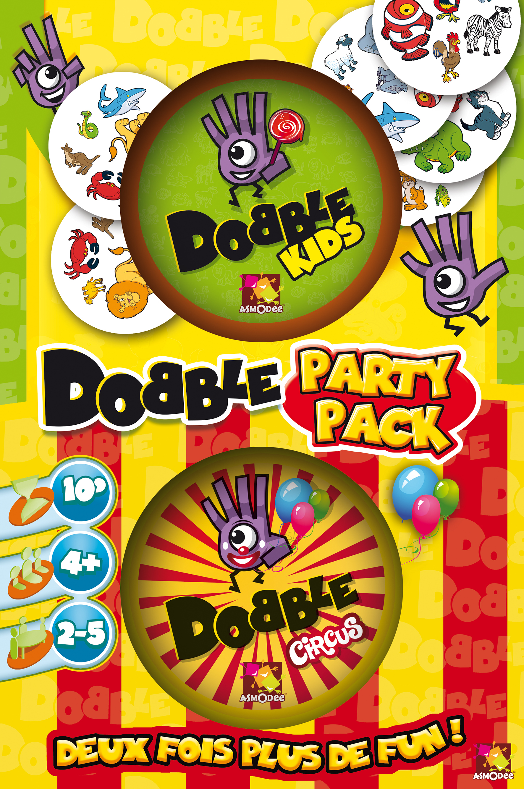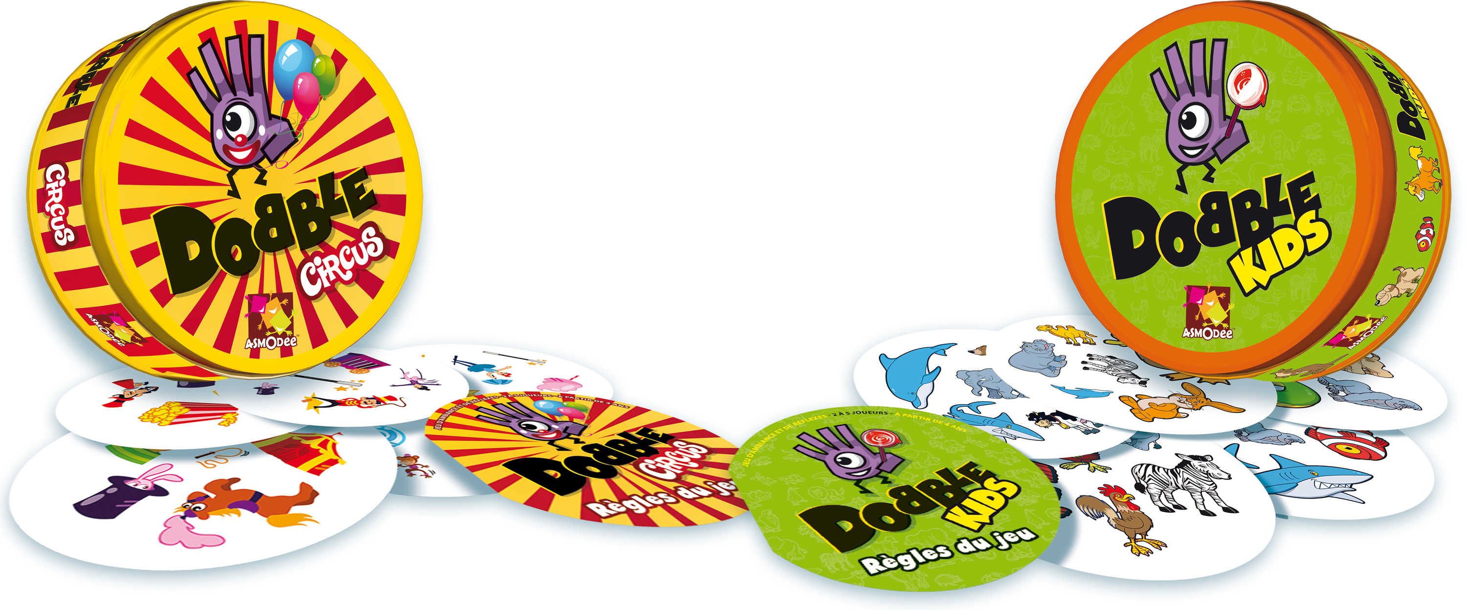 Elle réunit le best-seller Dobble Kids, sur les animaux, et une nouveauté, Dobble Circus, sur le thème du cirque et de la fête foraine. Les enfants peuvent enfin varier leur thème de jeu!