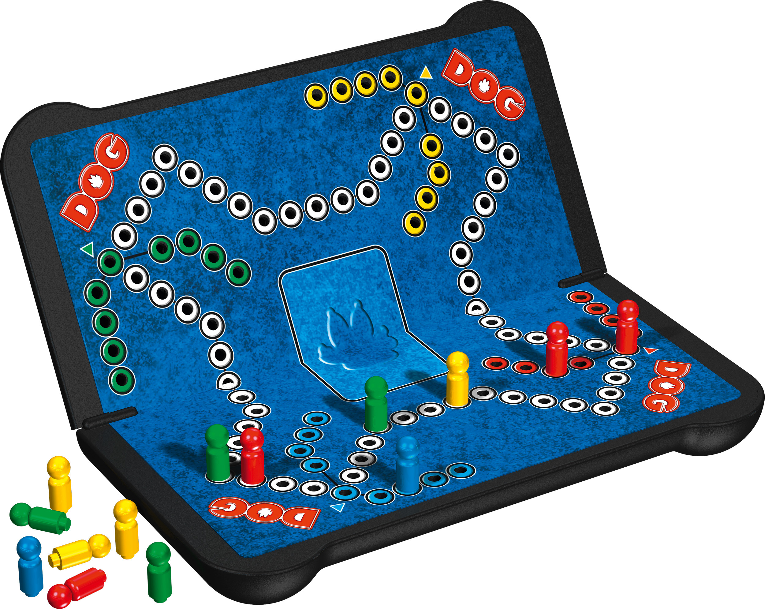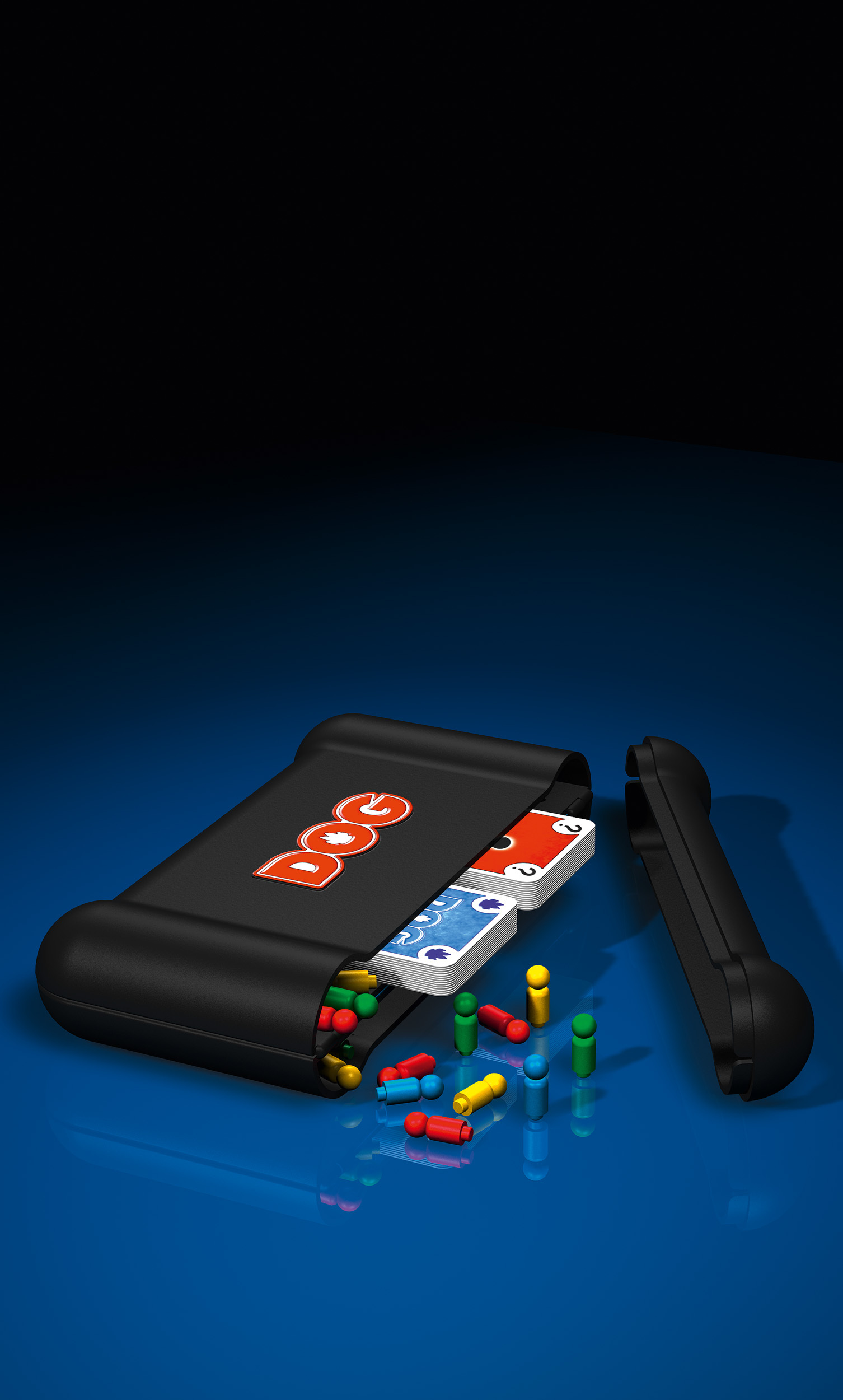 Dans cette boîte solide conçue pour le voyage, le matériel est protégé. Ainsi, plus de souci, on peut emporter avec soi son jeu de DOG par tous les temps. Car une fois qu'on a essayé de jouer à DOG, on ne peut plus résister à ce jeu génial.