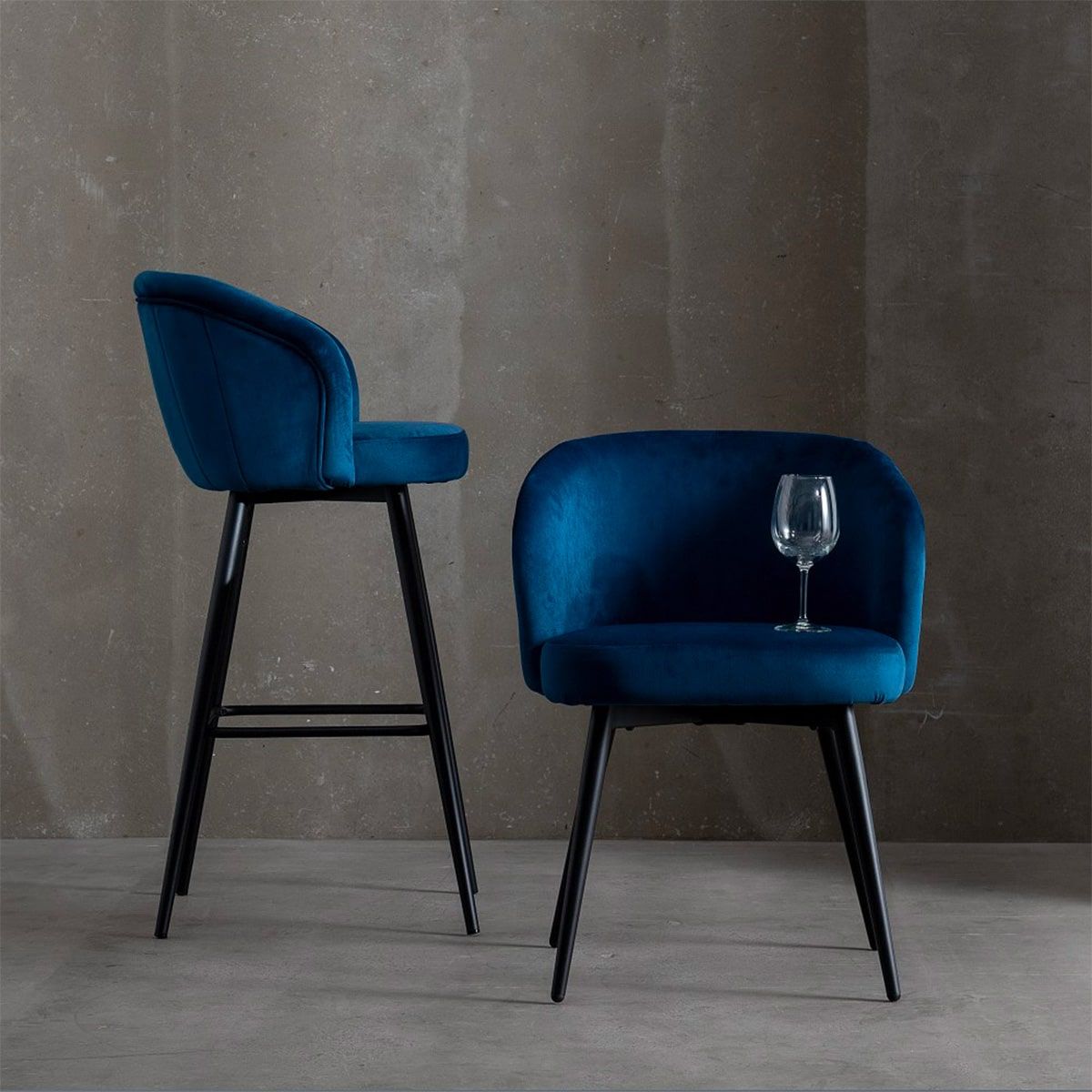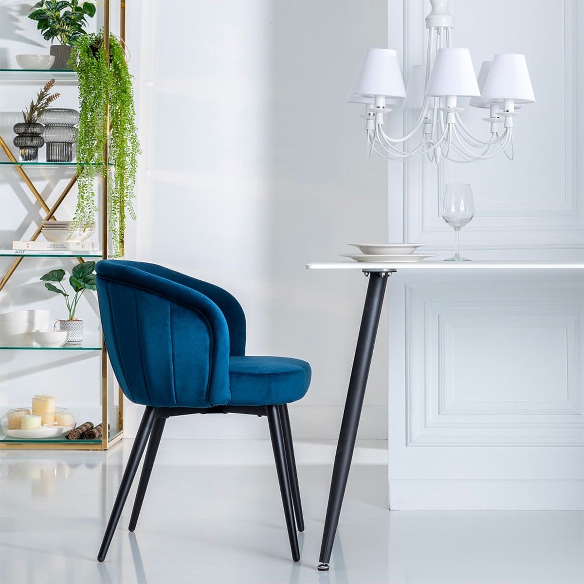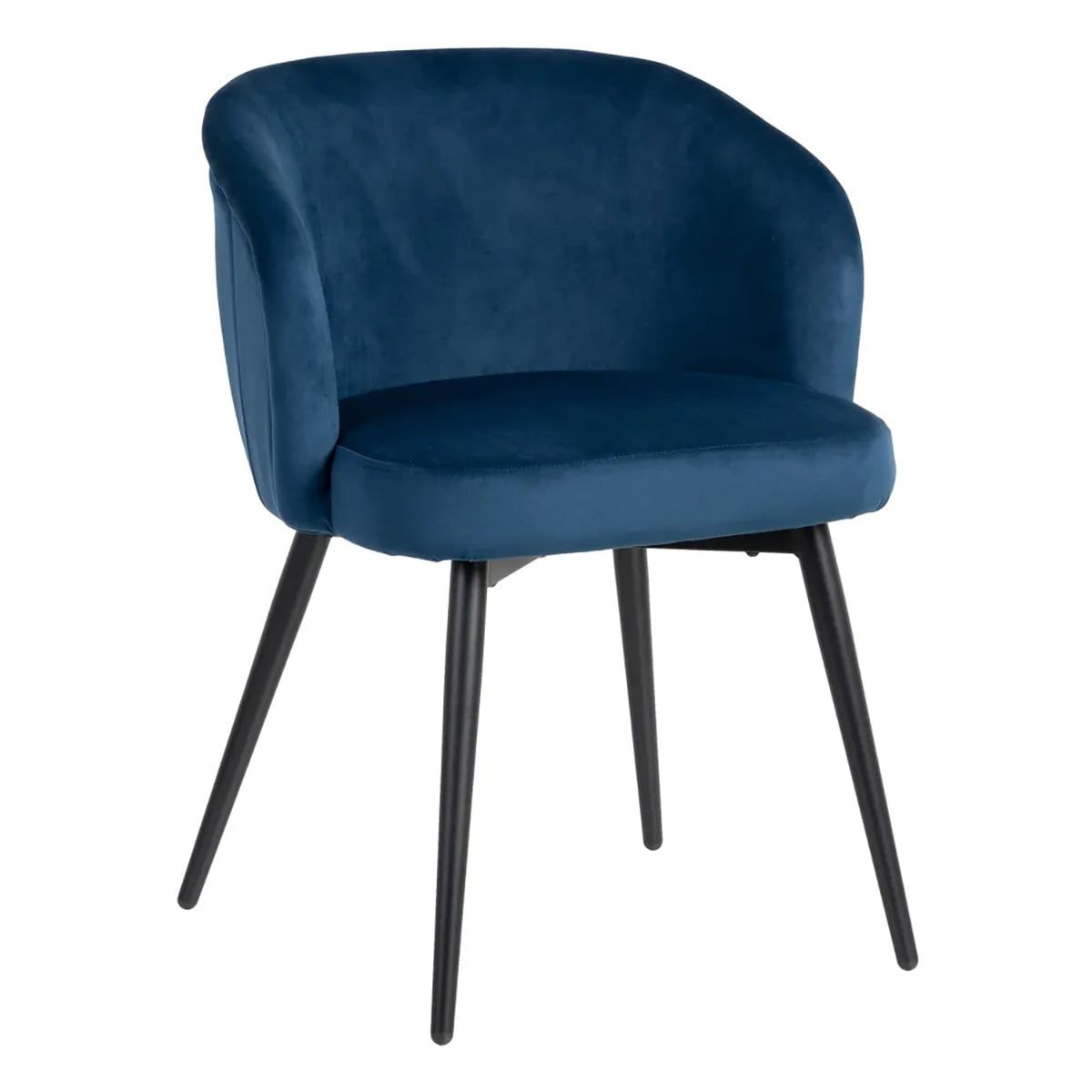Lot de 2 Chaises Velours Bleu Nuit Piètement Métal Noir de la gamme Dolce, la gamme qui inspire le confort et la douceur.