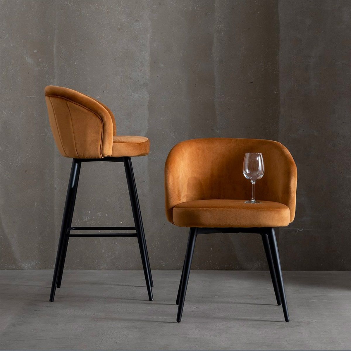 Lot de 2 Chaises Velours Marron Piètement Métal Noir de la gamme Dolce, la gamme qui inspire le confort et la douceur.