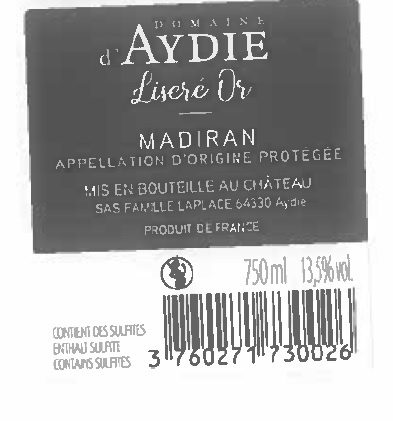 | Libellé | Domaine d'Aydie "Liseré Or", 2020 - Madiran AOP - Rouge - 75 cl |