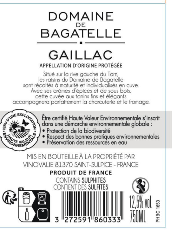 | Libellé | Domaine de Bagatelle, 2022 - Gaillac AOP - Rouge - 75 cl |