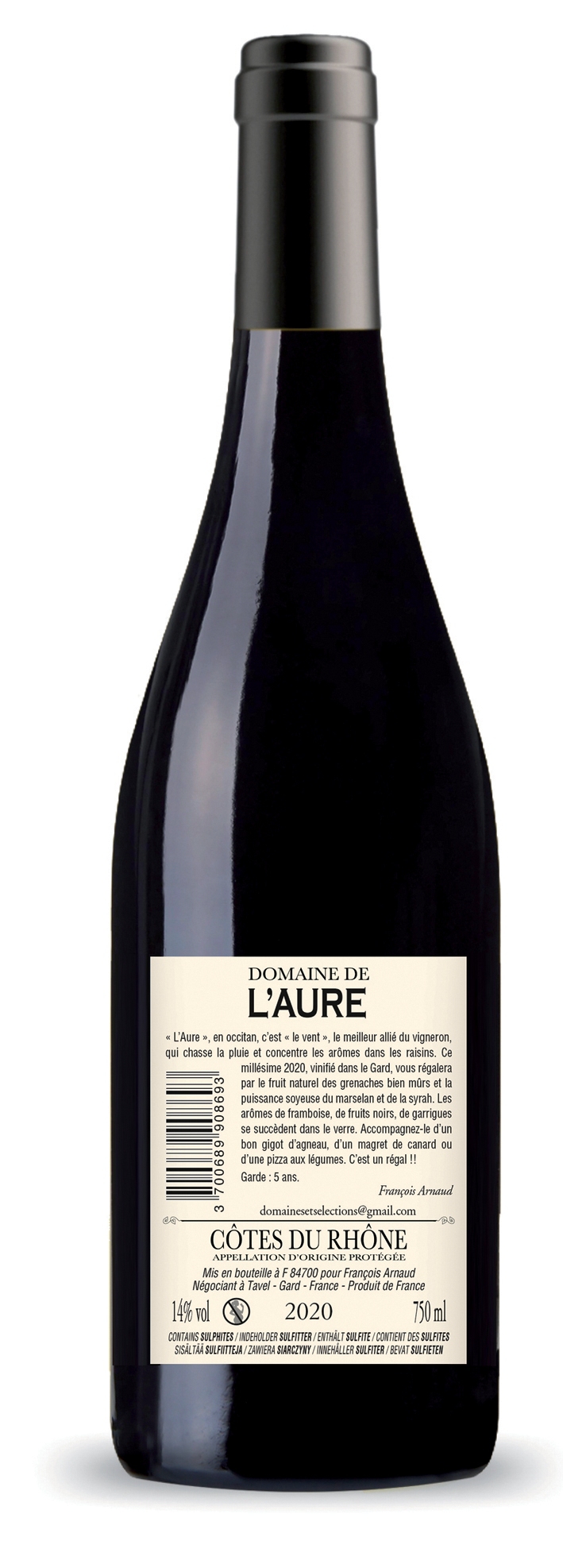 | Libellé | Domaine de l'Aure, 2020 - Côtes du Rhône AOP - Rouge - 75 cl |