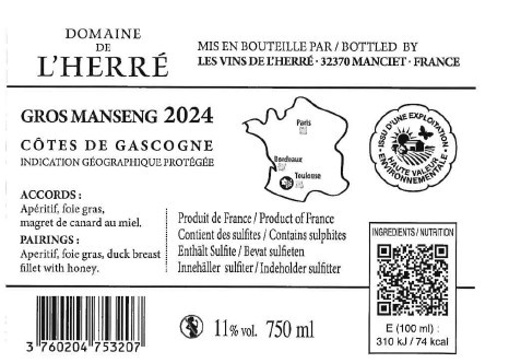 | Libellé | Domaine De L'Herré, 2024 - Côtes de Gascogne IGP - Blanc Moelleux - 75 cl |