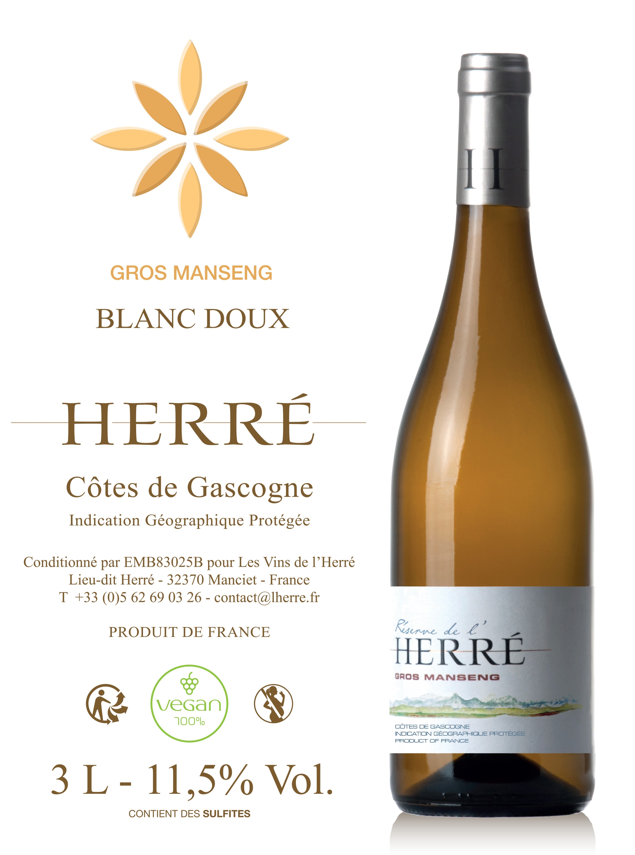 | Libellé | Domaine de l'Herré - Côtes de Gascogne IGP - Blanc Moelleux - Bag in Box - 3 L |
