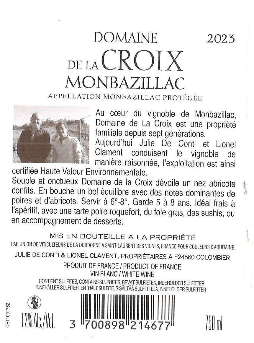 | Libellé | Domaine de la Croix, 2023 - Monbazillac AOP - Blanc Moelleux - 75 cl |