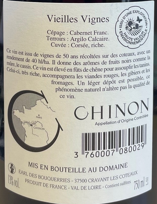 | Libellé | Domaine des bouquerries, 2023 - Chinon AOP - Rouge - 75 cl |