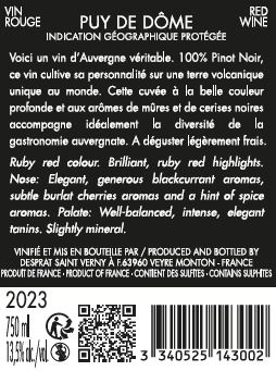 | Libellé | Domaine Desprat Saint Verny Vignoble Volcanique "Le Pinot Noir", 2023 - Puy de Dôme IGP - Rouge - 75 cl |
