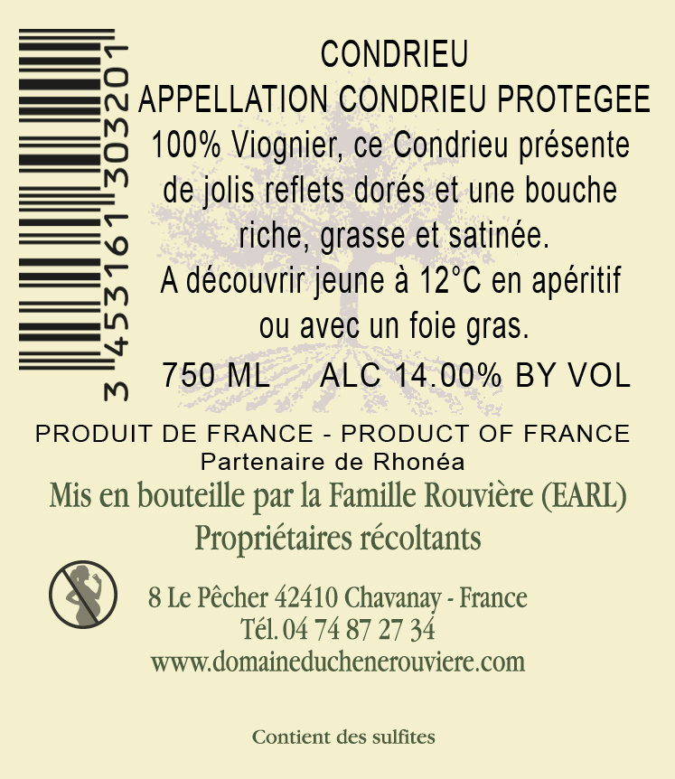 | Libellé | Domaine du Chêne, 2022 - Condrieu AOP - Blanc Sec - 75 cl |