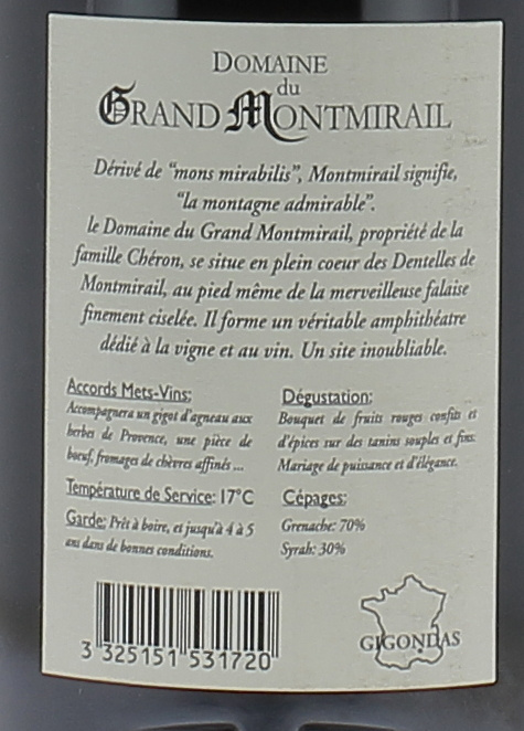 | Libellé | Domaine Grand Montmirail, 2020 - Gigondas AOP - Rouge - 75 cl |