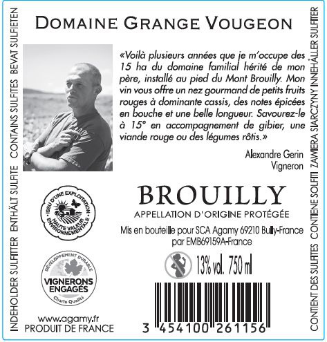 Libellé Domaine Grange Vougeon, 2022 - Brouilly AOP - Rouge - 75 cl
