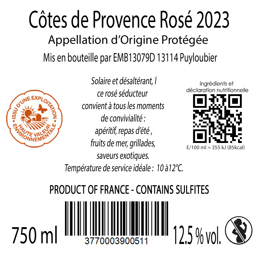 | Libellé | Domaine La Grande Bauquiere Fauvette, 2023 - Côtes de Provence AOP - Rosé - 75 cl |