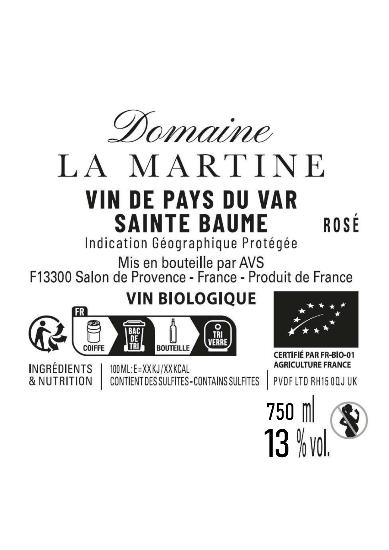 | Libellé | Domaine la martine BIO - Var IGP - Rosé - 75 cl |