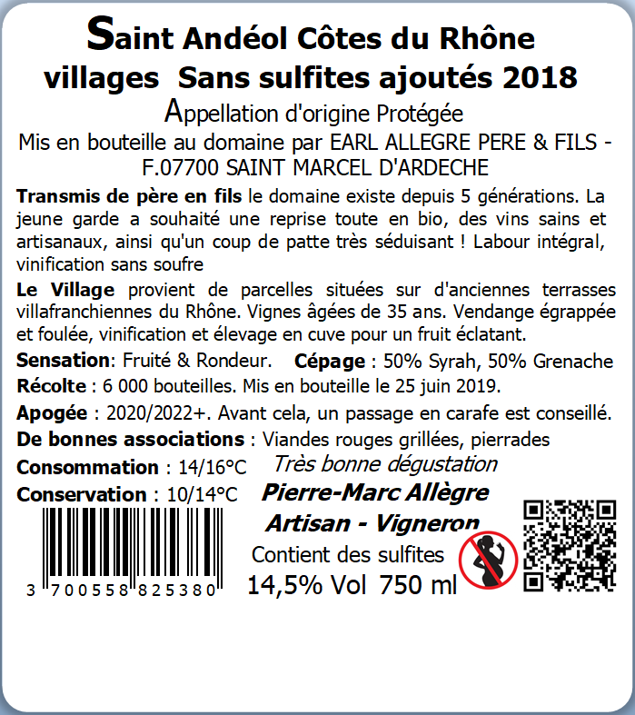 | Libellé | Domaine la Pierre-Laine BIO, 2018 - Côtes du Rhône Villages AOP - Rouge - 75 cl |