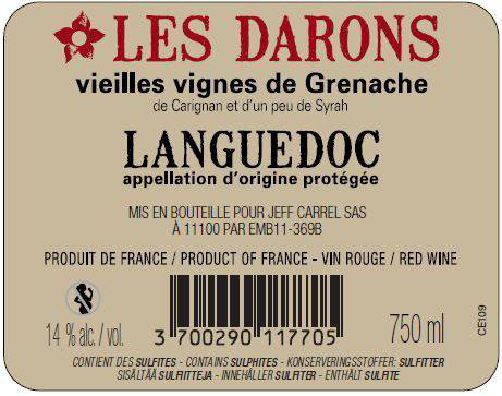 | Libellé | Domaine "Les Darons" by Jeff Carrel, 2022 - Languedoc AOP - Rouge - 75 cl |
