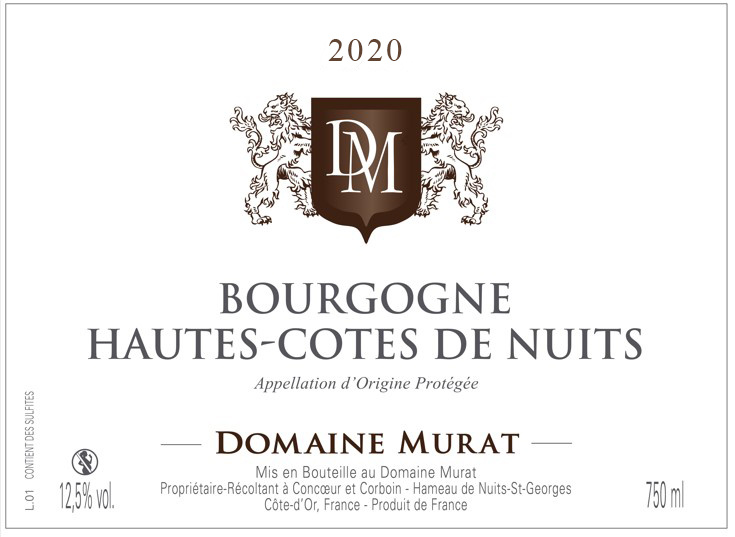 | Libellé | Domaine Murat, 2020 - Bourgogne Hautes-Côtes de Nuits AOP - Rouge - 75 cl |