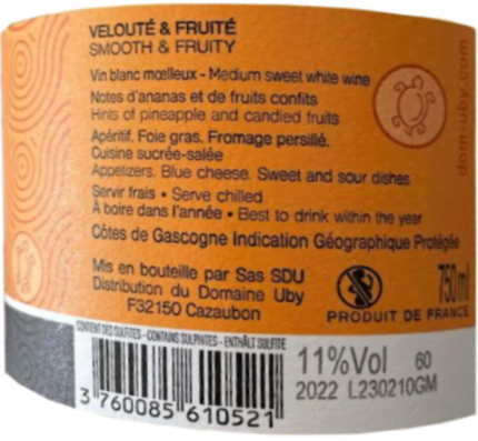 | Libellé | Domaine UBY, 2022 - Côtes de Gascogne IGP - Blanc Moelleux - 75 cl |
