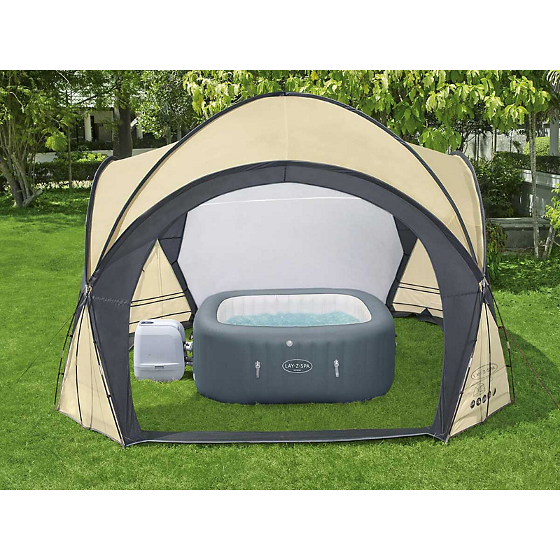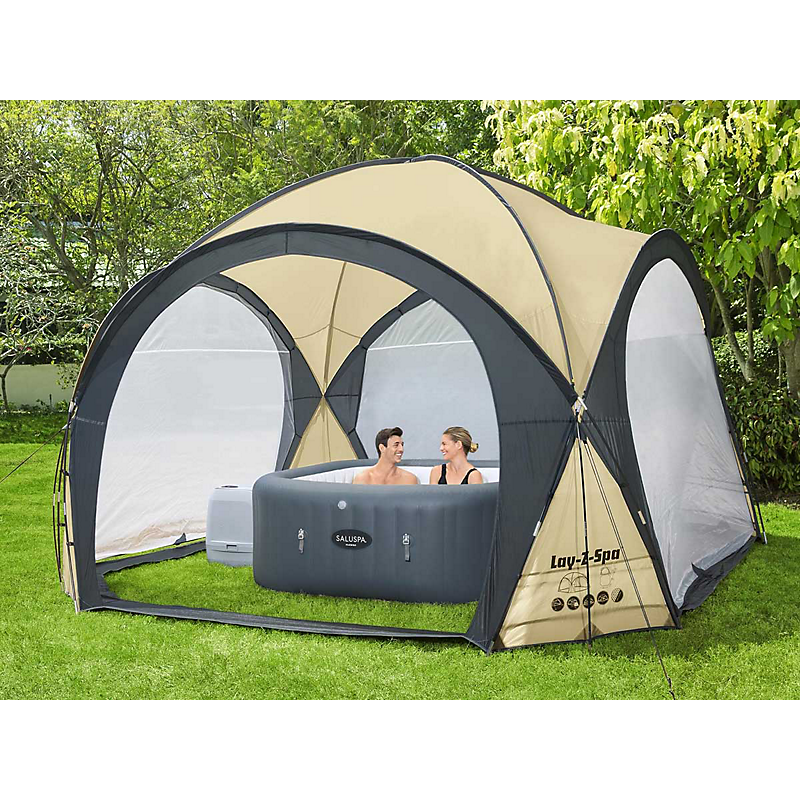 Bestway Lay-Z-Spa 12'9" x 12'9" x 8'4"/3.90m x 3.90m x 2.55m Dome. Couleur du produit: Noir, Gris, Type: Tente de jardin, Coloration: Monochromatique. Dimensions (l x p): 3,9 x 3,9 m, Hauteur: 3900 mm, Poids: 13 kg. Largeur du colis: 220 mm, Profondeur du colis: 750 mm, Hauteur du colis: 235 mm. Produit par casier d’expédition (interne): 2 pièce(s), Longueur du casier principal (externe): 750 mm, Largeur du casier principal (externe): 460 mm