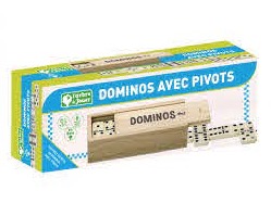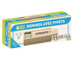 Jeu de Dominos - coffret en bois : 28 dominos avec pivots (4,5 x 2,2 x 0,6 cm).