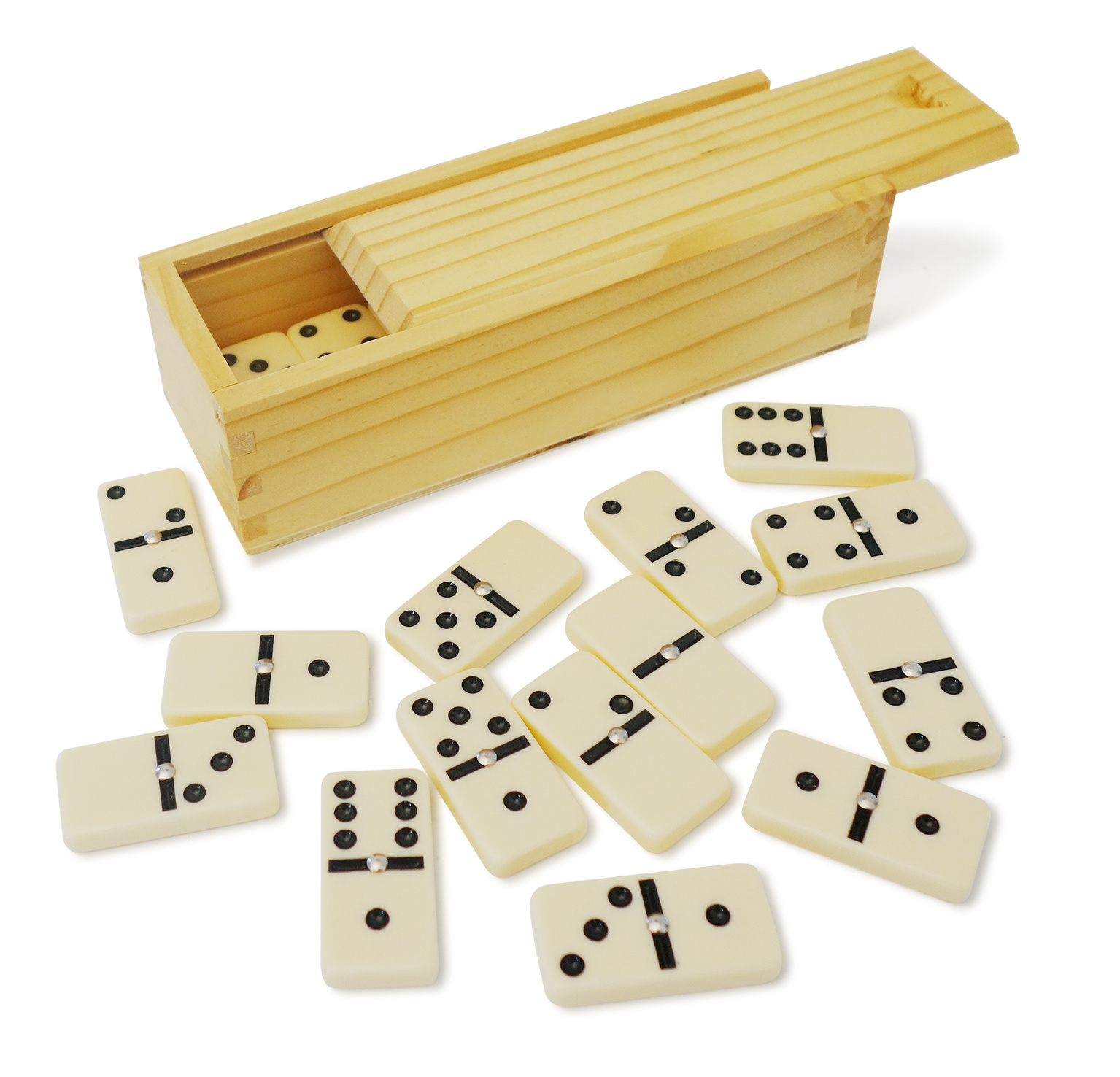 Partager votre plaisir de jouer avec les incontournables Dominos ! Dans ce jeu d'association, la règle est simple : être le premier à se débarrasser de tous ses dominos en faisant correspondre la valeur du domino choisi à celle du domino déjà posé. Pour cela, chaque joueur prendra au hasard 7 dominos et le reste constitue la pioche. Vous êtes plutôt jeu d'agilité ? Optez pour l'effet domino : un jeu d'adresse idéal pour les plus concentrés et minutieux ! Placer les dominos debout les uns derrière les autres, à quelques centimètres chacun, pour créer un circuit. Les plus créatifs pourront même créer de véritables parcours ! Attention aux gestes maladroits... une perte d'équilibre et c'est la catastrophe ! Il ne vous restera plus qu'à apprécier la chute ! Un jeu de réflexion simple et familial. Son format voyage est idéal pour emmener votre jeu partout, en toutes occasions. Dès 6 ans, 2 à 4 joueurs Contient des dominos blancs en plastique avec marquage noir (18 lignes, cloutés), et une boite en bois de pin de Chine avec couvercle coulissant (type plumier) pour le rangement.