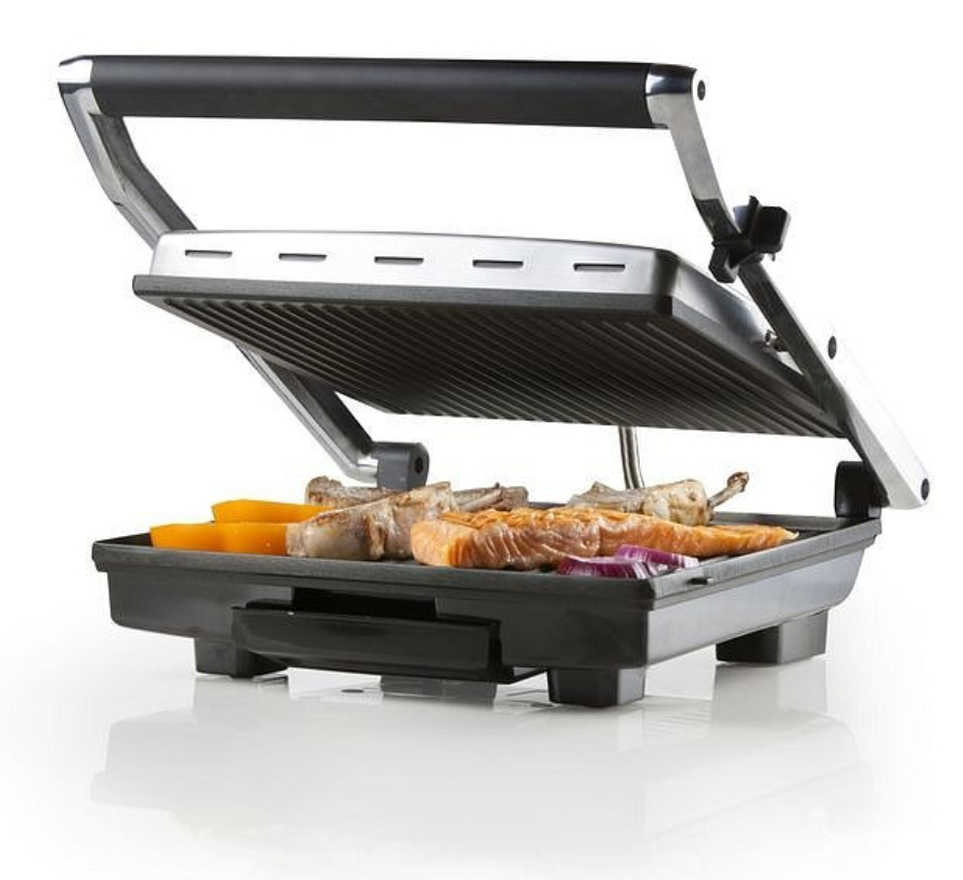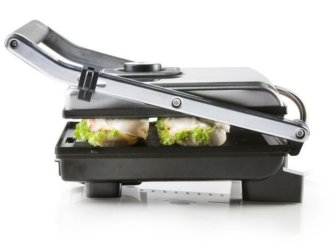 Grill multifonctions .2000 W . Multi usages : panini,toasts,viande,poisson .Thermostat réglable .Couvercle réglable en hauteur Témoin lumineux M/A et pret a l'emploi.Accessoires de nettoyage inclus