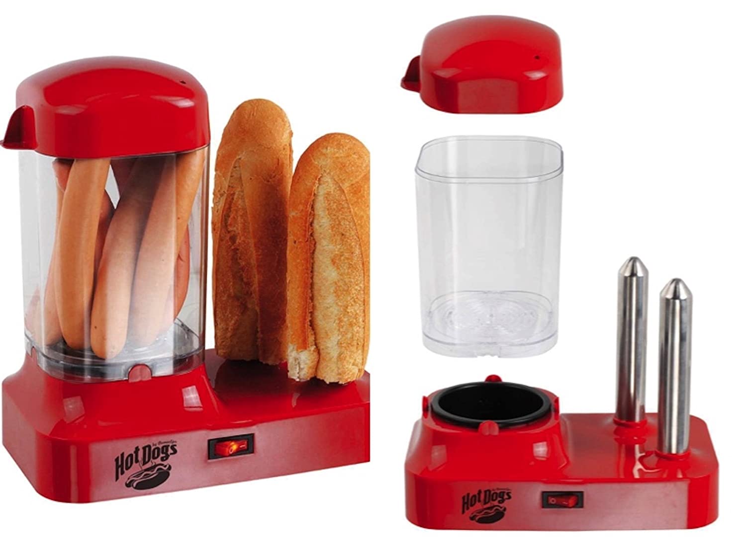 Machine à hot dog réservoir transparent amovible pour réchauffer jusquà 8 saucisses à la vapeur 2 éléments chauffants verticaux en acier inoxydable pour réchauffer 2 pains simultanément Interrupteur lumineux on/off réservoir compatible lave vaisselle