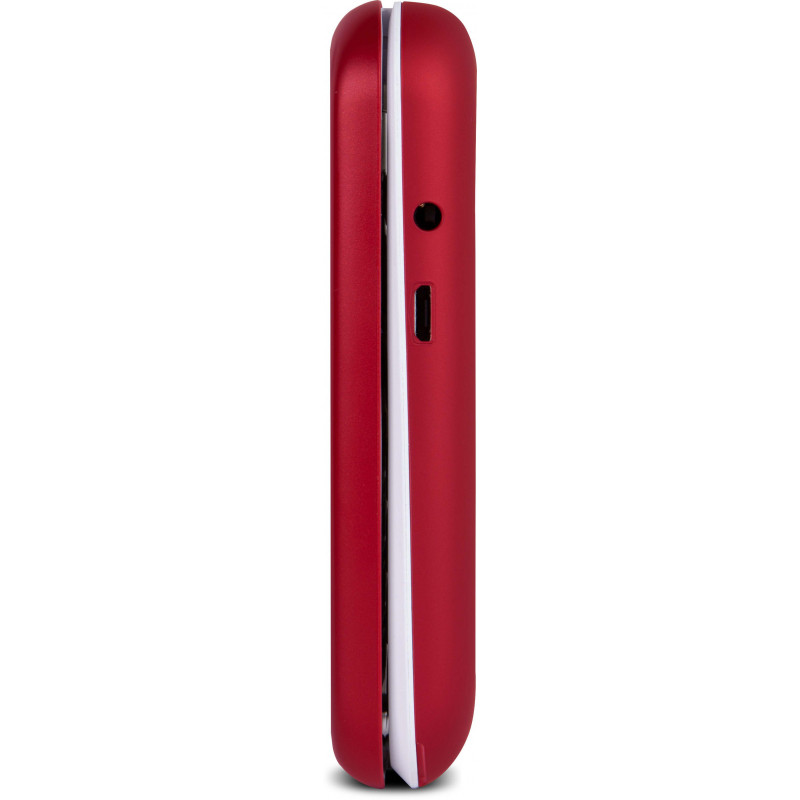 Doro 6040. Format: Clapet. Capacité de la carte SIM: Double SIM. Taille de l'écran: 7,11 cm (2.8"), Résolution de l'écran: 320 x 240 pixels. Résolution de la caméra arrière (numerique): 3 MP. Bluetooth. Radio FM. Technologie batterie: Lithium-Ion (Li-Ion), Capacité de la batterie: 1000 mAh, Délai d'attente (2G): 500 h. Couleur du produit: Rouge, Blanc