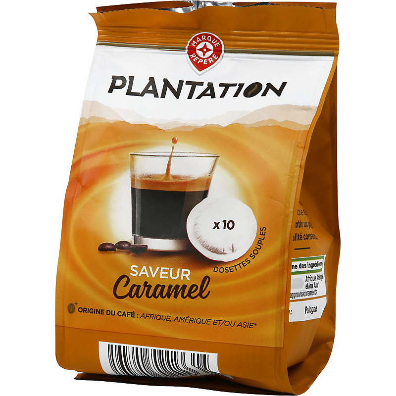 10 dosettes souples de café torréfié et moulu, saveur caramel PLANTATION