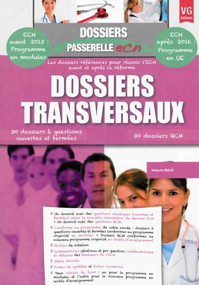 Dossiers passerelle ecn Les dossiers références pour réussir l'ECN avant et après la réforme ECN avant 2015 : Programme en modules ECN après 2016 : Programme en UE Les modalités de classement à l'ECN sont en permanente évolution. Ainsi, les futurs concours se révèleront être une période charnière, car le type de dossiers tombés récemment et ceux qui vont faire l'objet des futurs concours créeront une rupture et une difficulté d'adaptation pour les étudiants. Deux situations peuvent ainsi se présenter : . ECN avant 2015 : dossiers avec d'une part des questions ouvertes (QRNF = questions à réponses non fermées) ayant repris une place plus importante dans le dernier concours avec beaucoup de Physiopathologie, de Clinique et d'imagerie et, d'autre part, des questions à réponses fermées (QRF). . ECN après 2016 : dossiers QCM pour le concours 2016, mais aussi des dossiers QRNF et QRF pour certains partiels de faculté. Afin de répondre à l'ensemble de ces exigences, la nouvelle collection « Dossiers passerelle ECN » a été créée pour les étudiants passant l'ECN avant 2015, mais aussi après 2016. Partant d'un énoncé commun, les étudiants passant le concours avant 2015 pourront s'entraîner sur le programme actuel organisé en modules, avec des dossiers à questions ouvertes et fermées. Les étudiants passant le concours après 2016 pourront quand à eux s'entraîner sur le nouveau programme organisé en Unités d'Enseignement sous forme de dossiers QCM (mais aussi en dossiers à questions ouvertes et fermées pour mieux comprendre la spécialité et pour certains de leurs partiels). Réalisé par des auteurs classés parmi les meilleurs de l'ECN et validé par des spécialistes de la matière, chaque dossier vous permettra un entraînement optimal adapté à votre année. En effet, l'ensemble des dossiers comprendra : . Un énoncé avec des questions classiques (ouvertes et fermées) en prenant compte de la nouvelle orientation du dernier ECN, mais aussi un énoncé avec des questions QCM. . Le contenu des questions sera conforme au programme de votre année (Dossiers à questions ouvertes et fermées conformes au programme organisé en modules. Dossiers QCM conformes au nouveau programme organisé en Unités d'enseignement). . Une grille de cotation pour les corrections des deux types de dossiers. . Des commentaires généraux et par question vous permettant d'une part d'adopter la méthode de réflexion des meilleurs de l'ECN et, d'autre part, d'acquérir leurs réflexes. . Une liste détaillée des items abordés. . Et enfin, une partie permettant de mieux assimiler le cours se présentant sous la forme d'une « fiche synthèse » ou d'une « fiche consensus ». L'ensemble des données clés sera répertorié dans un cahier de bord qui vous permettra de vous guider et de vous préparer de façon optimale à la spécialité étudiée. Nous vous souhaitons à tous une excellente préparation aux ECN.v