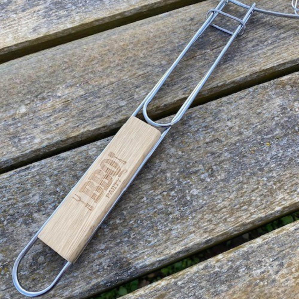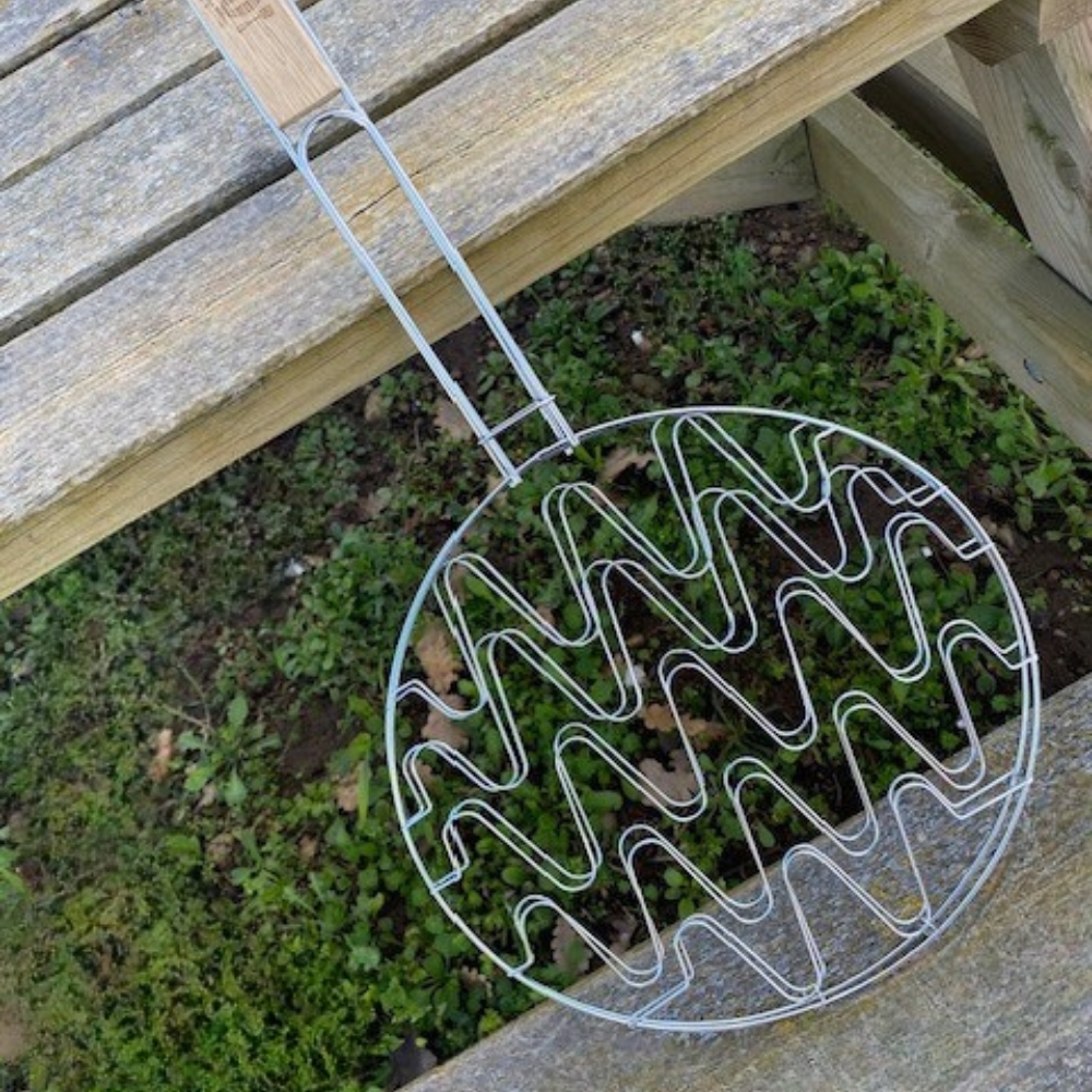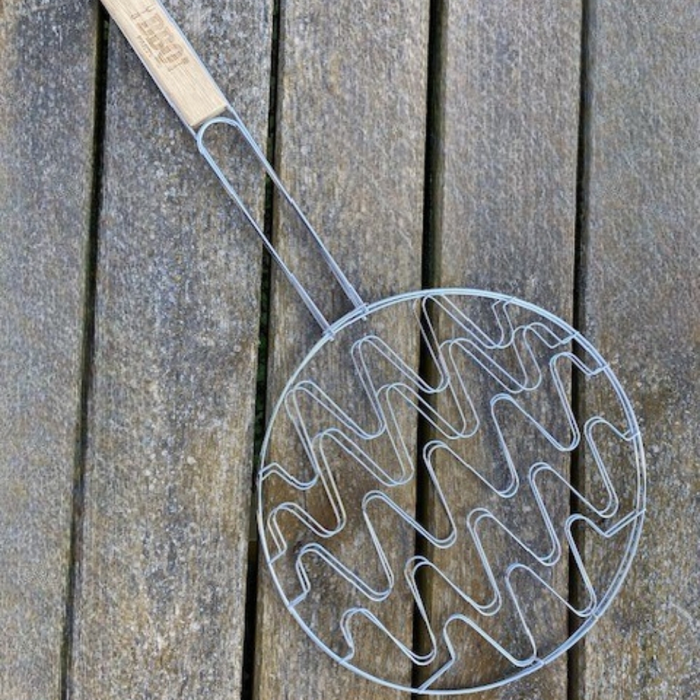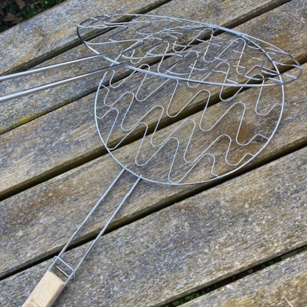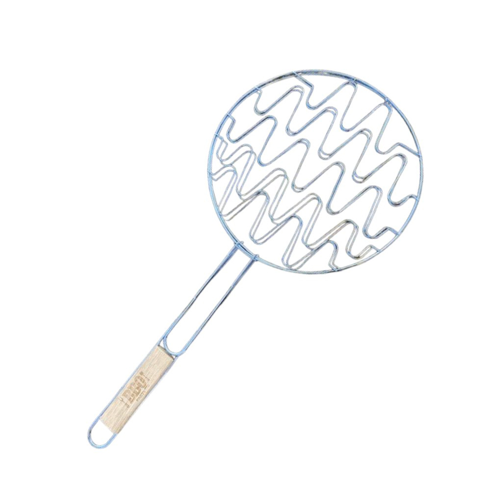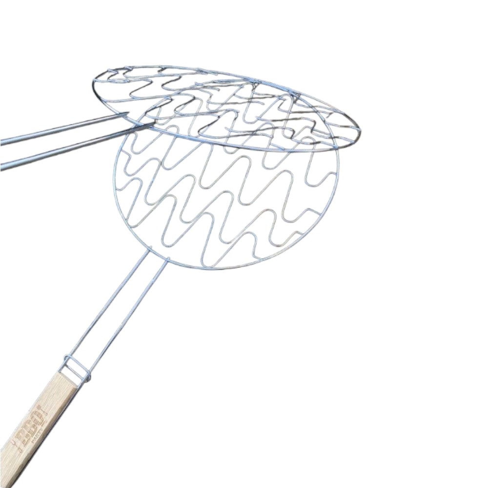 Double Grille Barbecue Ronde 30 cm en Acier Chromé avec Manche en Bois