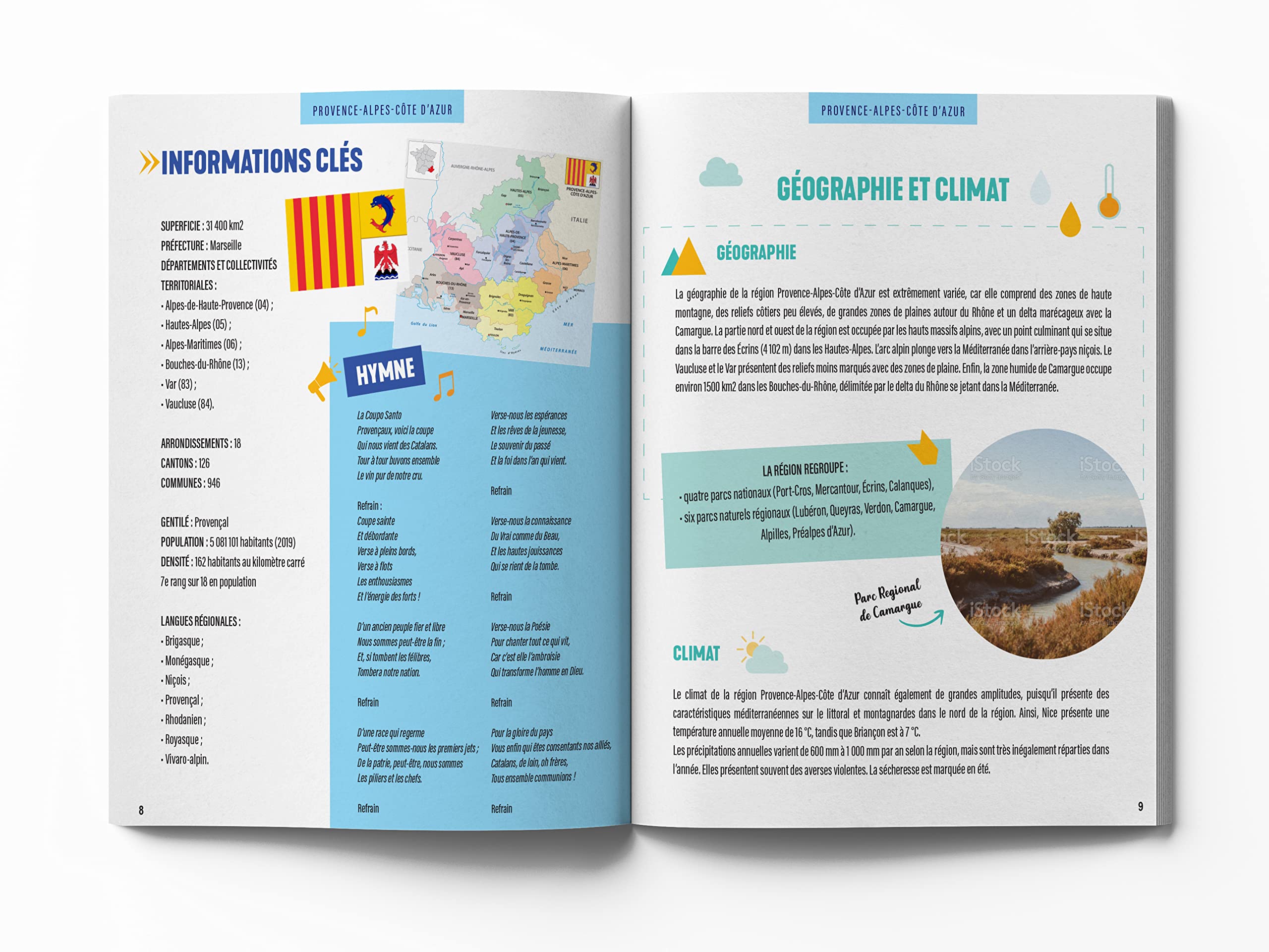 Une compilation classée par régions et illustrée de superbes photos, dans laquelle découvrir :leur histoire, leurs plus beaux sites à (re)découvrir, leurs spécialités culinaires, leurs spécificités, les grands personnages qui ont fait leur histoire, et bien d’autres choses encore !