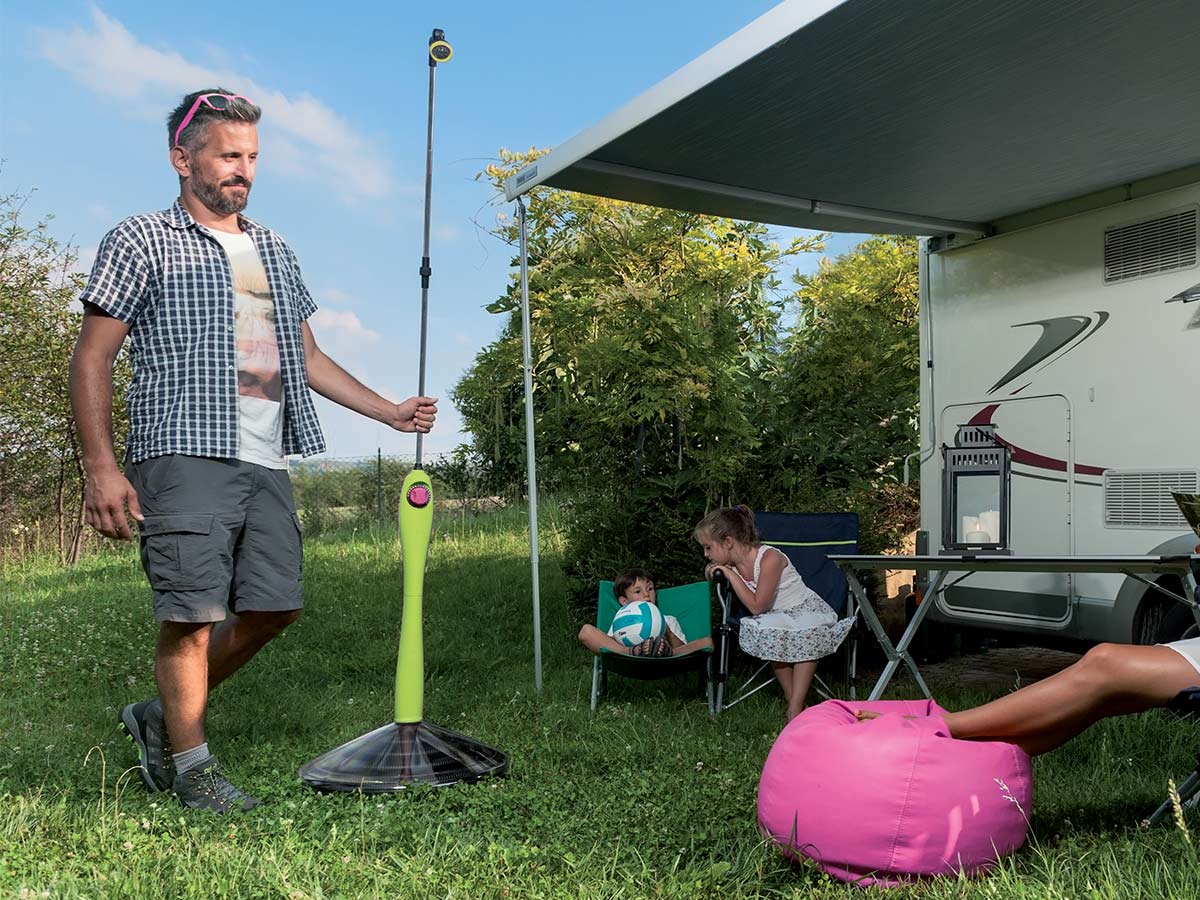Sunny Style de marque GF, douche solaire avec mélangeur. Permettant d'obtenir de l'eau chaude en 2 heures. Pas besoin de fixation. avec réservoir d'eau intégré. Pomme de douche orientable. Hauteur : 2 m. Avec nez de robinet 3/4". / Contenance réservoir:8 L / Couleur:Vert / Garantie:2 ans / Hauteur:200 cm / Marque:G.F. / Matière(s):Polyéthylène haute densité (PEHD) / Mitigeur:Oui / Poids:6,4 kg / Réservoir d'eau:Oui / Solaire:Oui / Type de produit:Douche
