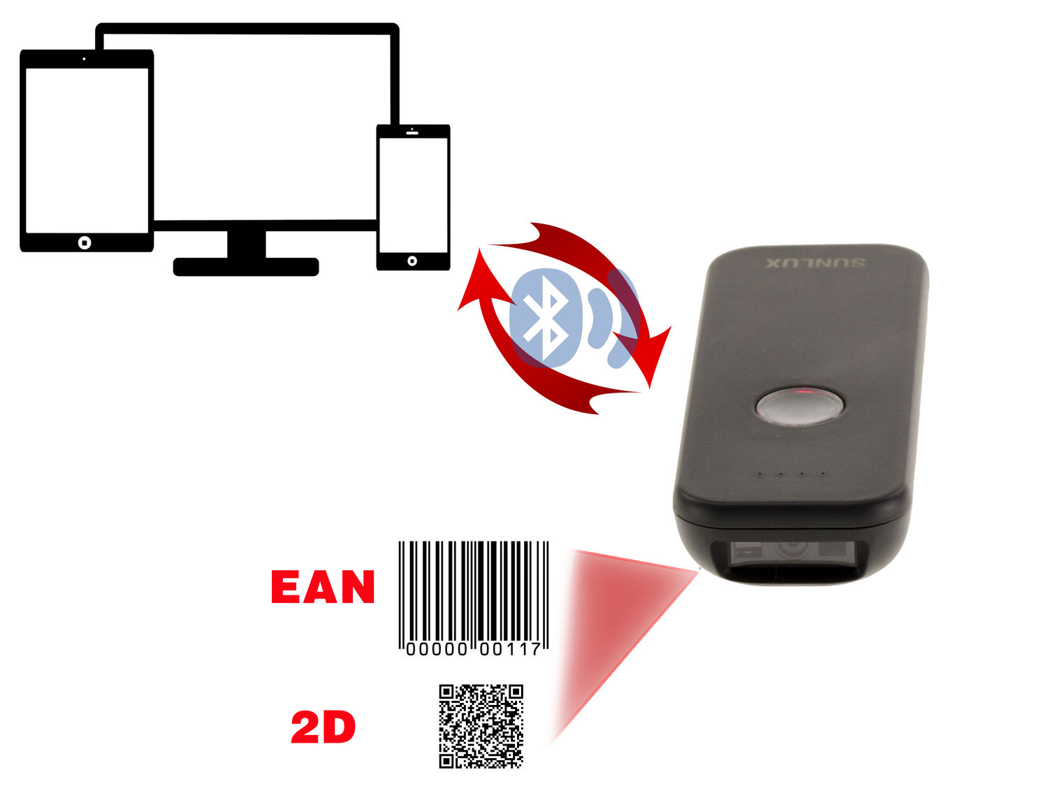 Douchette portable Bluetooth pour Codes Barres 1D UPC, EAN, GS1 et 2D QR Code, DataMatrix, Aztec etc...Sa