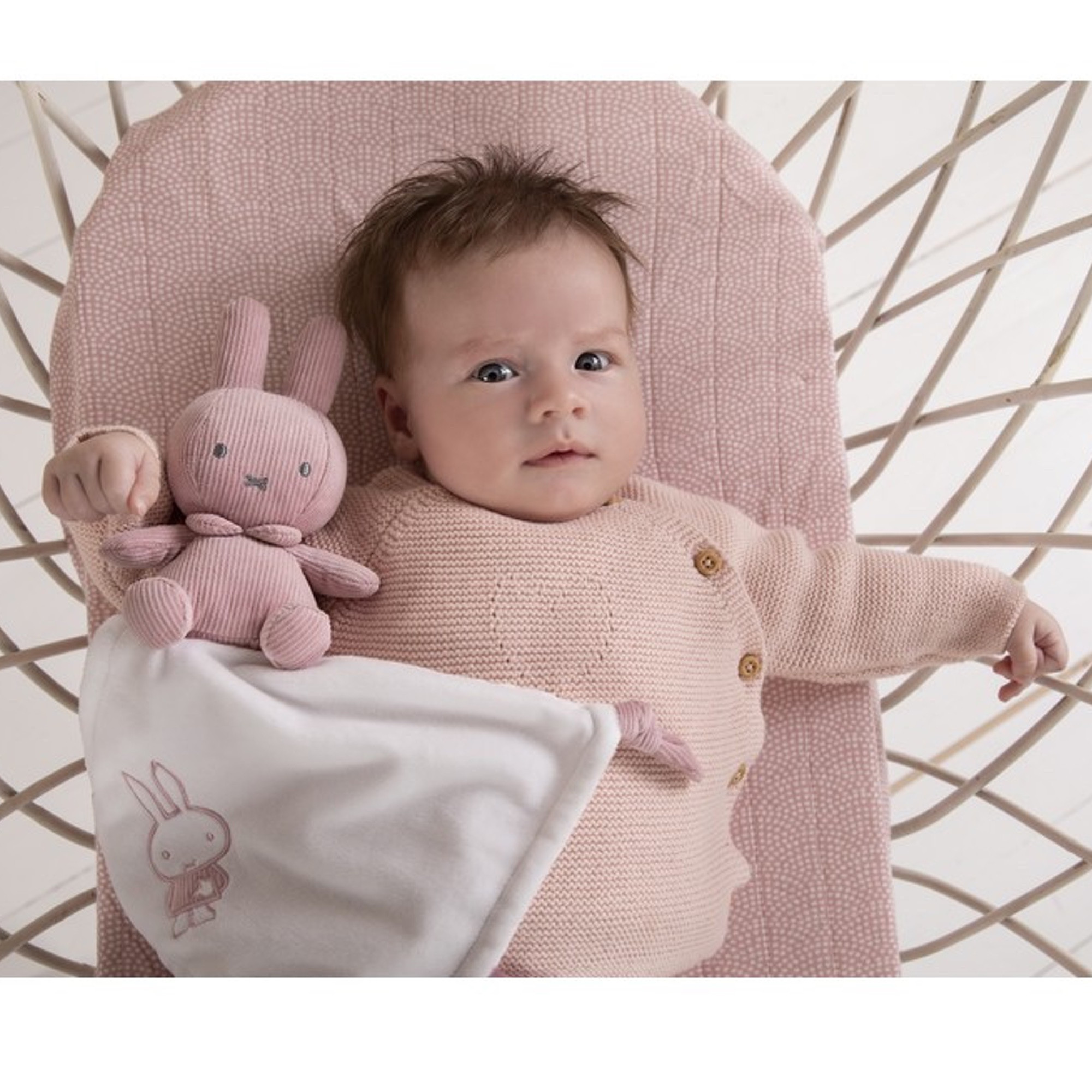 Découvrez tout la collection Miffy sur notre boutique ! Doudou, hochets, mobile et peluches disponible en trois coloris : marinière, rose velours ou tricot vert amande.