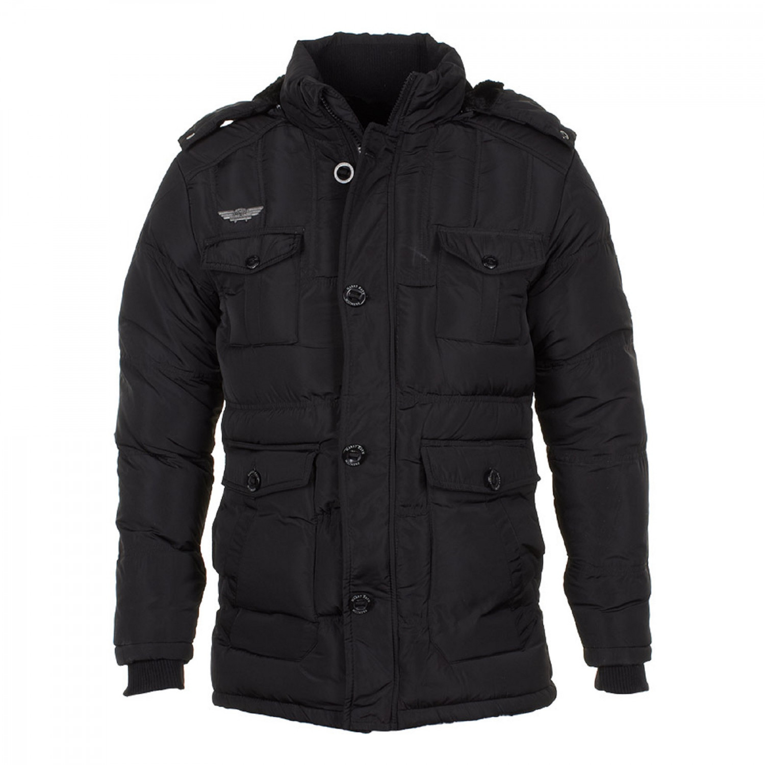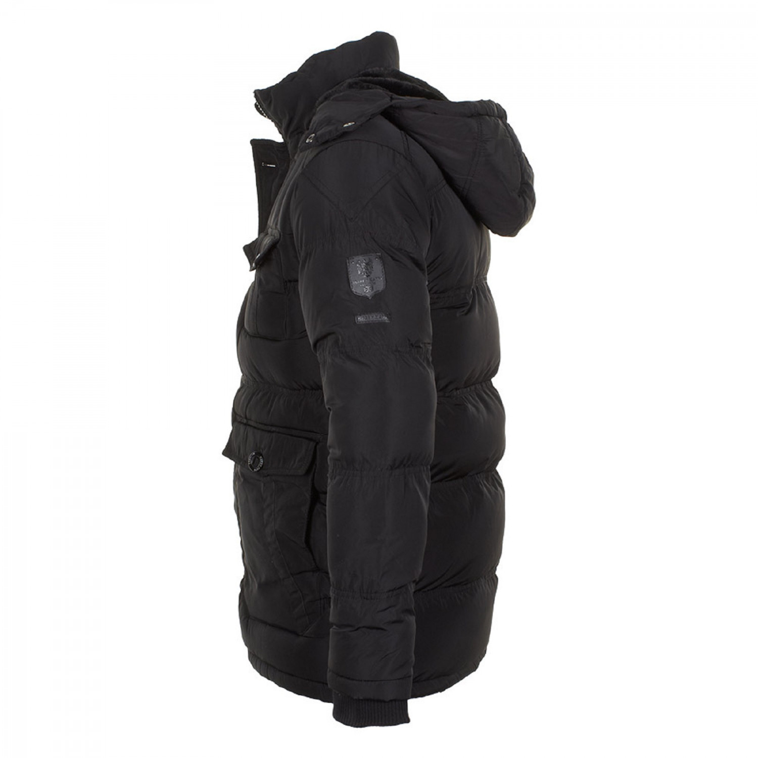 Doudoune à capuche amovible. Col montant. Manches longues. Plaque avec logo devant. Ecusson avec logo sur la manche gauche. 6 poches dont 2 pressionnées. Poche intérieure. Finitions côtelées. Fermeture zippée et boutonnée. Matière : 100% polyester Entretien : lavage à 30°C