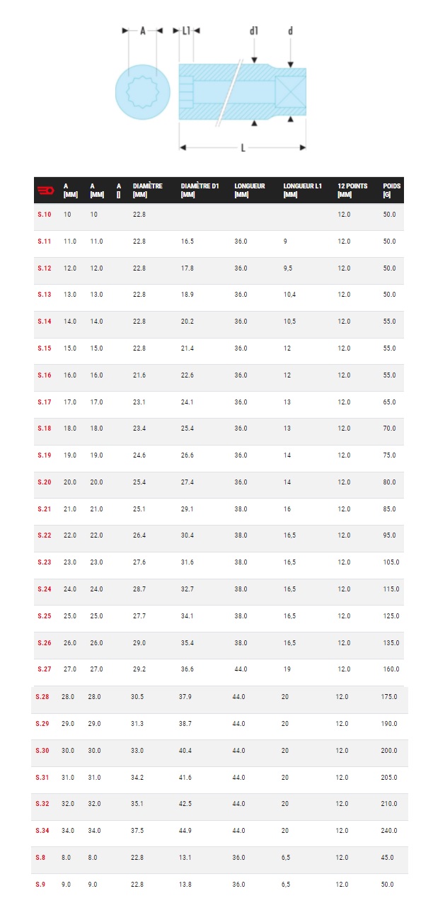 | Libellé | Douille 1/2'' 12 pans métriques 28mm - FACOM – S.28 |