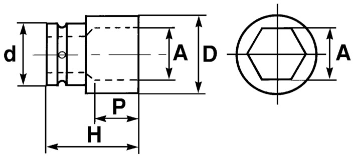 Libellé Douille à chocs 1/2'' courte 6 pans 23mm - SAM OUTILLAGE - NS-23