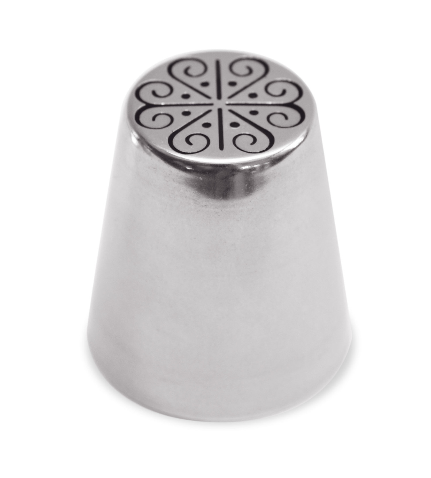 Douille russe en inox pour réaliser très facilement et en un seul geste des rosaces en glaçage. Douille russe en inox pour réaliser très facilement et en un seul geste des rosaces en glaçage. Conseils d'utilisation : Entretien : avant la première utilisation et après chaque utilisation, lavez et essuyez. Ingrédients et allergènes : Matière : Inox 18/8 apte au contact alimentaire Dimensions : Ø2,3 x Ø3,5 x H3,8 cm