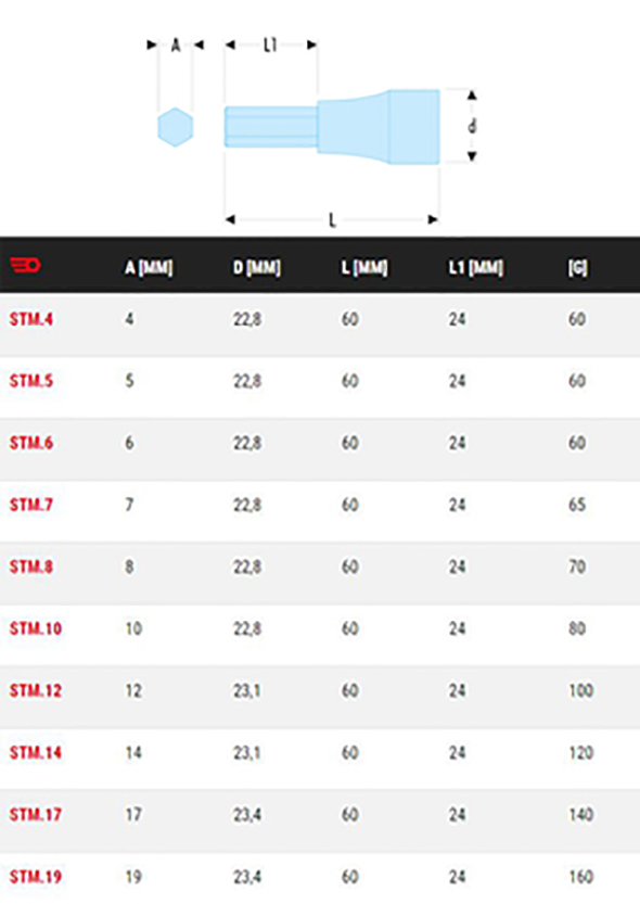 Les douilles tournevis 1/2'' STM créées par Facom sont spécialement conçues pour se fixer aux vis munies de têtes hexagonales creuses. Leur embout hexagonal, solidaire et fixe, permet d'extraire des vis à 6 pans creux, même lorsqu'elles sont fortement endommagées, sans causer de dommages supplémentaires. Présentant un fini chromé brillant associé à un embout phosphaté, ces douilles sont proposées en un ensemble inclus dans le coffret STM.J9A, couvrant une gamme de tailles allant de 5 à 19 mm.