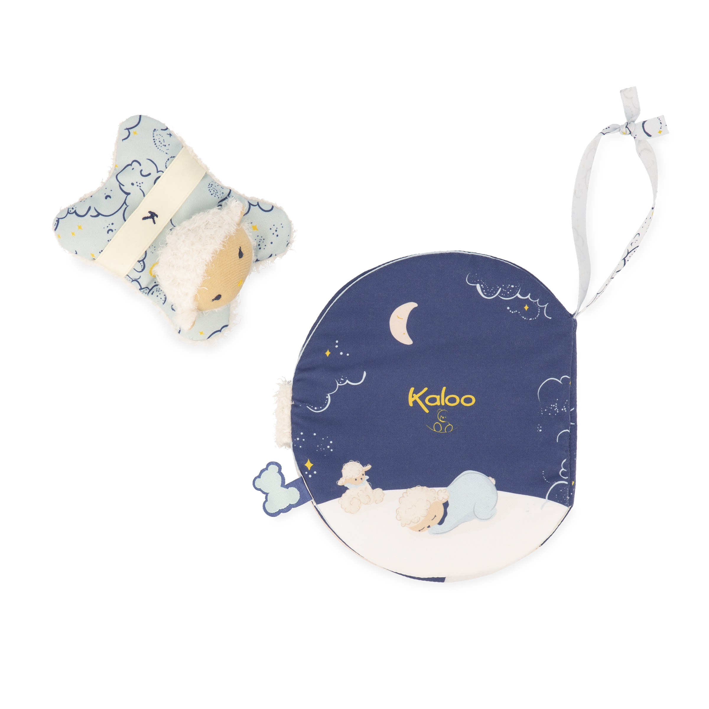 Découvrez la gamme Doux Sommeil, créée sur la thématique du sommeil de bébé qui est au cœur des préoccupations des parents. Les produits conçus sont dédiés au temps du coucher afin d’apaiser bébé dès les premiers instants et d’aider à la mise en place d’un rituel du coucher lorsqu’il grandit. Pour cette gamme, l'étiquette ourson Kaloo est phosphorescente afin d'apporter une douce lueur dans la nuit. Notre imagier en tissu (17 cm) permet de se préparer au rituel pour un doux sommeil. Il retrace la petite histoire de bébé mouton avant d’aller se coucher : son parent lui raconte une douce histoire pour l’aider à s’endormir, puis le met au lit avec son doudou et lui caresse tendrement le visage. Il lui fait son câlin et dépose de doux baisers. Ainsi, petit mouton s’endort paisiblement. Au fil des pages, caressez bébé délicatement avec le mini doudou mouton afin qu’il s’endorme tout doucement. Lavable en machine. Dès la naissance.