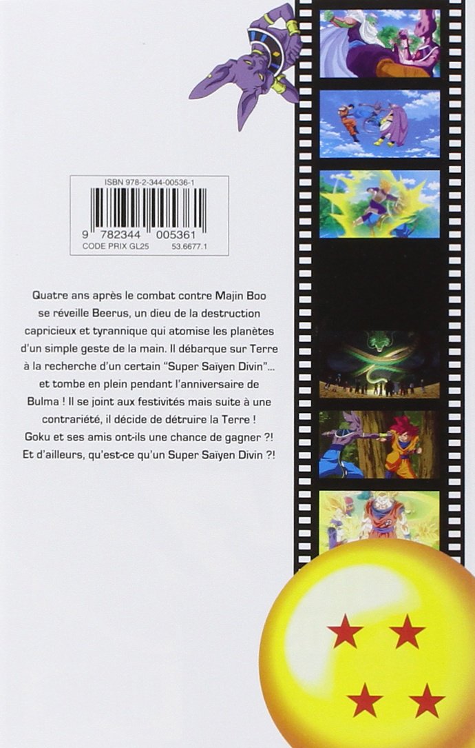 Quatre ans après le combat contre Majin Boo se réveille Beerus, un dieu de la destruction capricieux et tyrannique qui atomise les planètes d’un simple geste de la main. Il débarque sur Terre à la recherche d’un certain “Super Saïyen God”… et tombe en plein pendant l’anniversaire de Bulma ! Il se joint aux festivités mais suite à une contrariété, il décide de détruire la Terre ! Goku et ses amis ont-ils une chance de gagner ?! Et d’ailleurs, qu’est-ce qu’un Super Saïyen God ?!