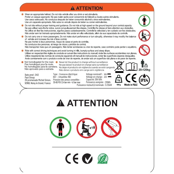 Le double système de freinage à disque assure un contrôle précis et progressif de la vitesse. L'éclairage LED améliore la visibilité, contribuant à une conduite plus sécurisée en conditions variées.