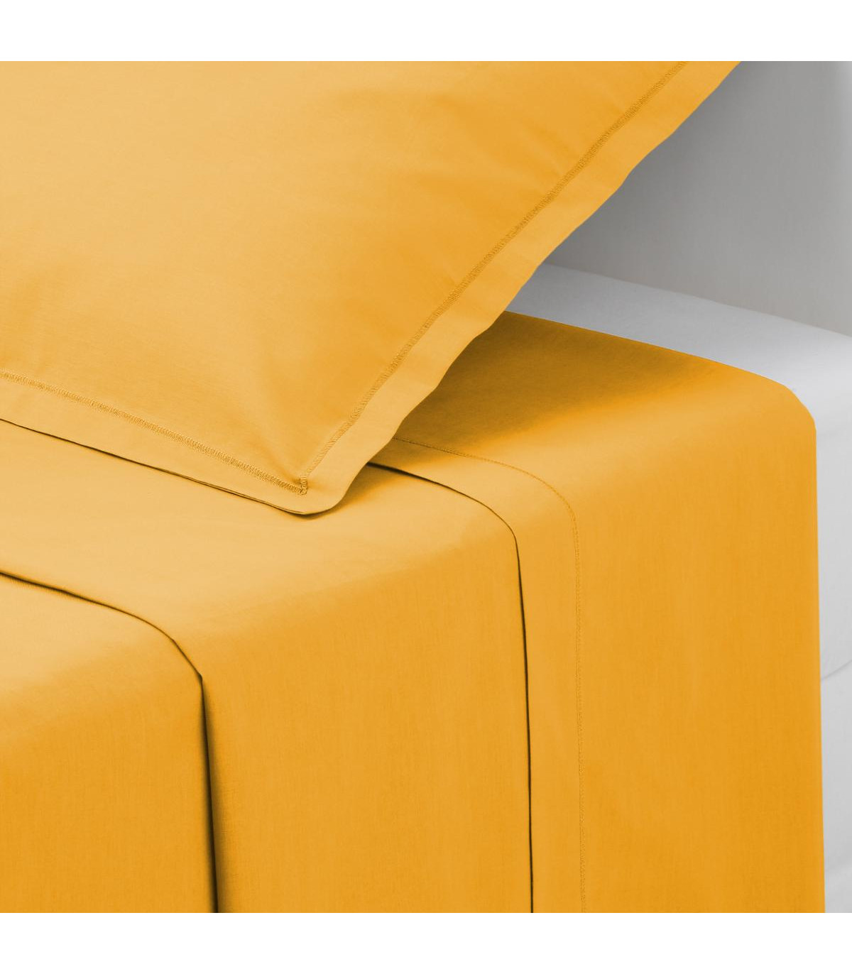 Drap 1 Personne en Coton Jaune ocre 180 x 290 cm --