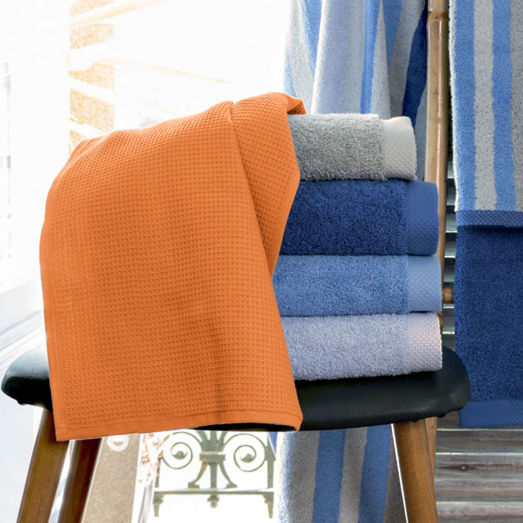 | Plus produit | Drap de bain 90x160 cm nid d'abeille, éponge 100% coton cardé 300 g/m² - PURE WAFFLE orange butane - Fabriqué au Portugal |